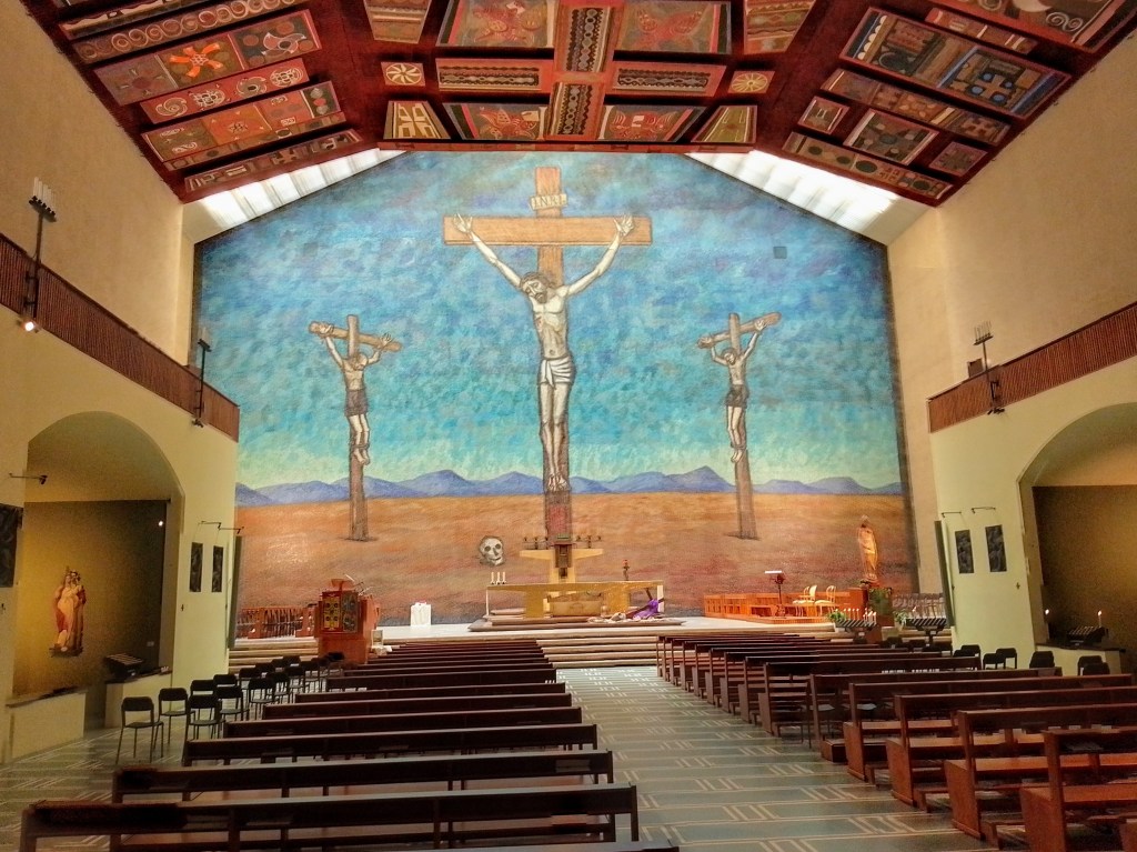La chiesa, per volontà del Bacciocchi e soprattutto di Mattei, fu arricchita da una serie di opere d’arte, dei migliori artisti degli anni Cinquanta. L’idea era di fare un’opera che rivaleggiasse con le chiese storiche italiane.