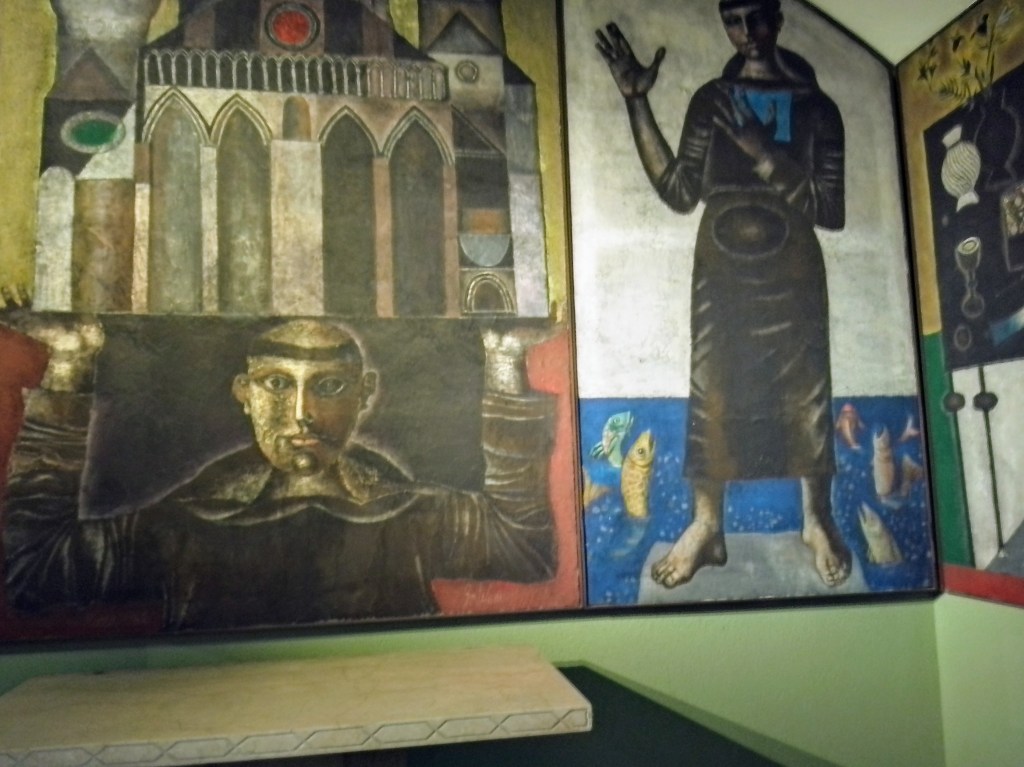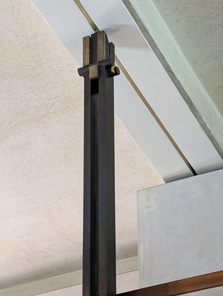 L’opera, in “beton brut” è coeva alla costruzione del convento lecorbuseriano, edificato per i frati domenicani tra il 1956 ed il 1957.