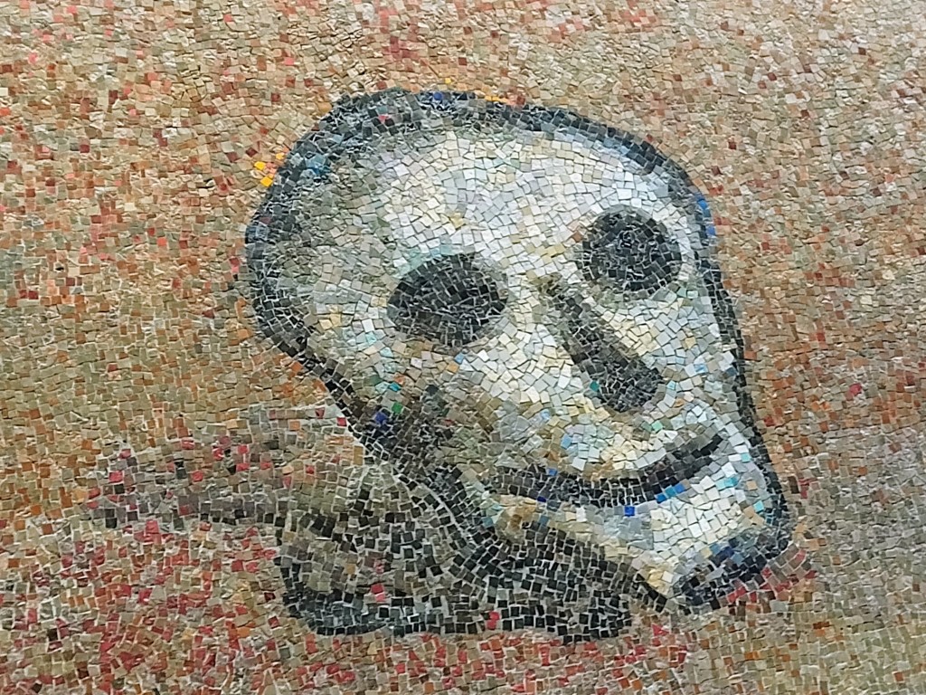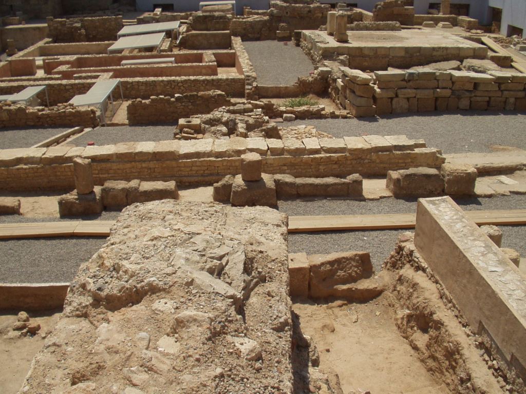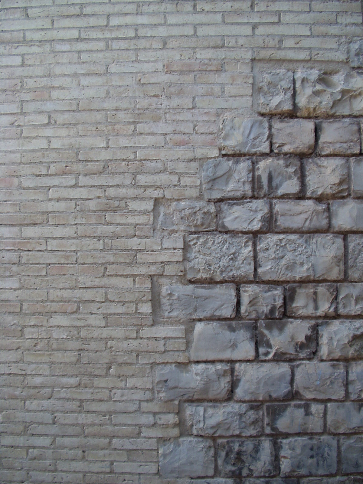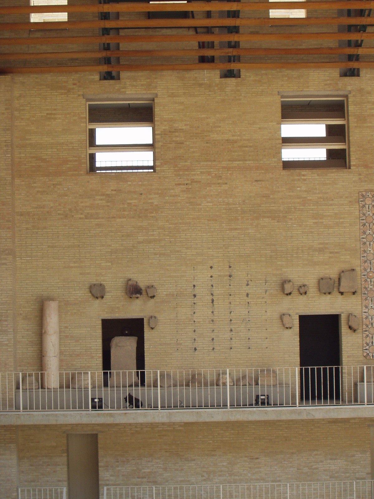 Il cemento armato, appoggiato sui reperti archeologici del basamento del Teatro romano, banalmente rivestito in mattonidi laterizio. Una operazione banale di nascondimentoscenografico,probabilmente concordata con i detentori del vincolo sui reperti.