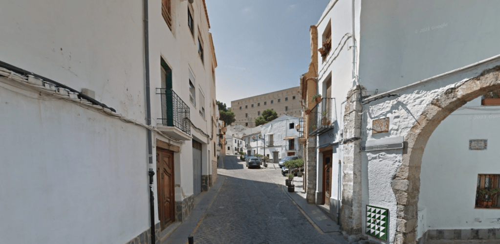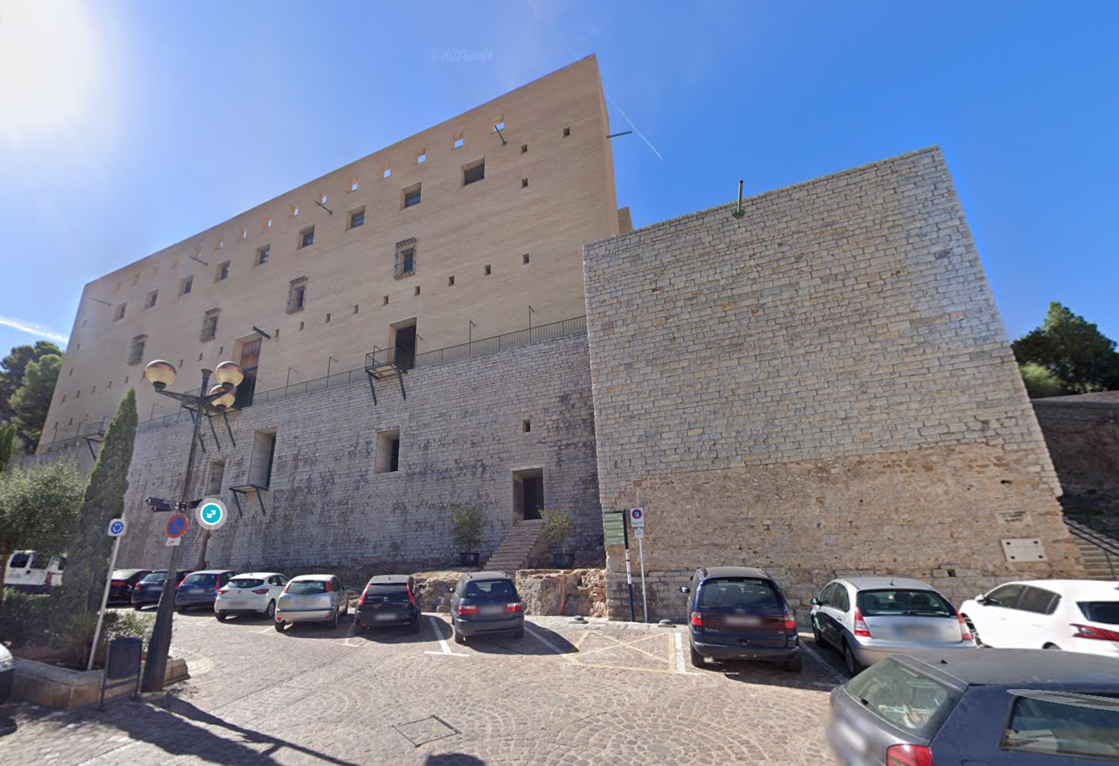 Il “cassone ricostruttivo”che domina la cittadina di Sagunto (1985/1993) – Immagine tratta da Google Earth