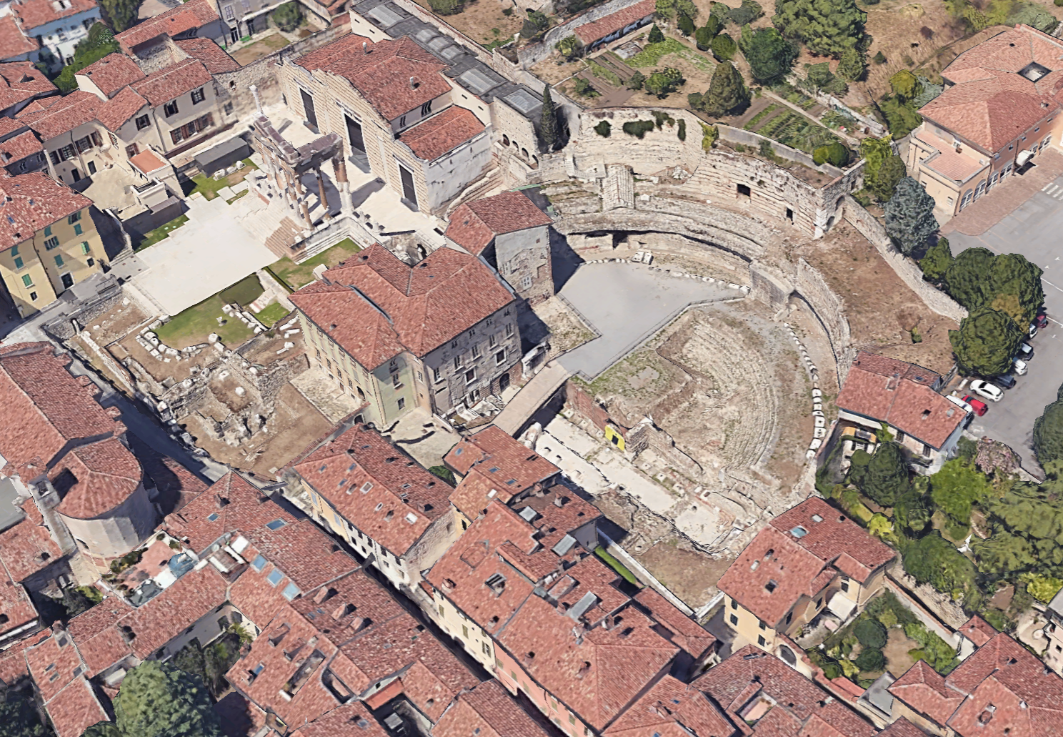 Immagine aerea tratta da Google Earth del Teatro Romano di Brescia
