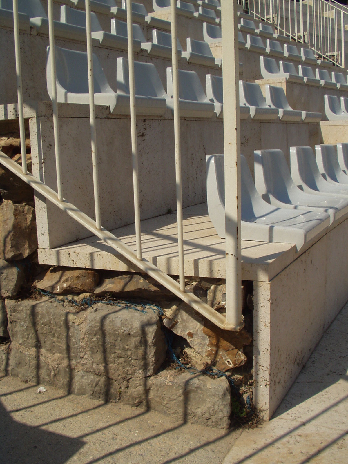 I reperti archeologici, della cavea, celati dall’inconsueto intervento ricostruttivo di Giorgio Grassi (1985). Comprese le “oscene” poltroncine in materiale plastico, da stadio.