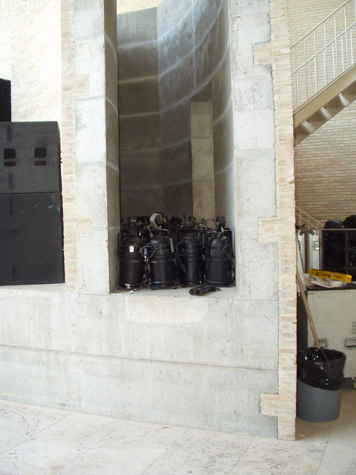 Nel corso del tempo, sono tornato parecchie volte in “pellegrinaggio” al Teatro di Sagunto, quasi per penitenza, o meglio per vaccinarmi; e sempre questo metodo di restauro (se così lo si può chiamare) non mi ha mai convinto. Più che una “violenza” lo trovo un vero e proprio stupro architettonico.