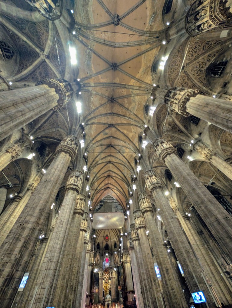 La Torre Velasca e l’abside del Duomo di Milano, visti dall’ ultimo piano della ex Torre Tirrenia, in Piazzetta Liberty