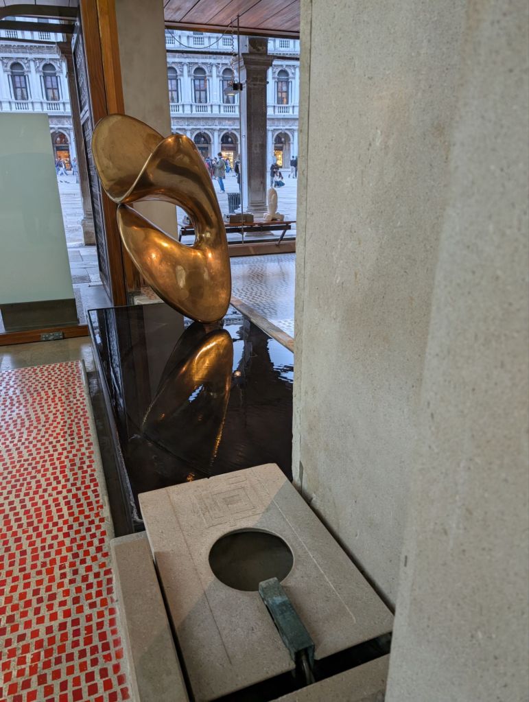 Lo spazio individuato si trova in un punto privilegiato sotto i portici delle Procuratie Vecchie all’angolo con il sotto-portego e la corte del Cavalletto, in piazza San Marco. Il nuovo ambiente di vendita viene inaugurato il 26 novembre 1958. Il negozio si presenta, come uno spazio museale, esaltato da una scelta sapiente dei materiali, completamente aperto verso l’esterno, con le quattro campate angolari, che si proiettano nella Piazza.