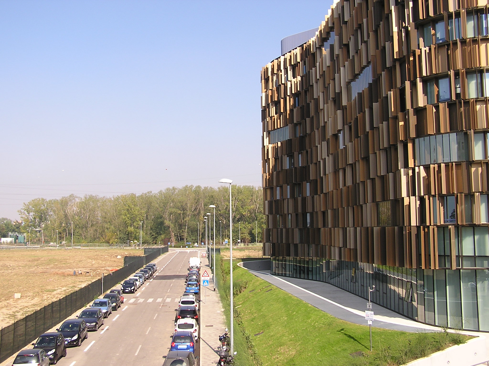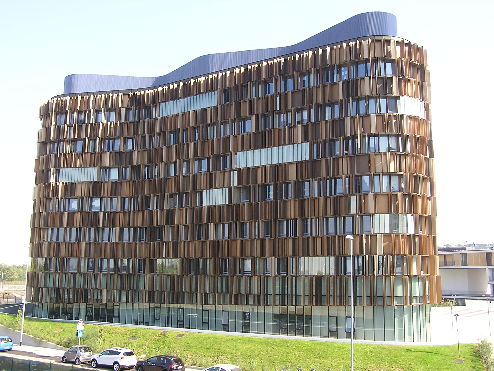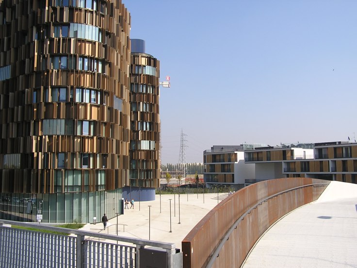 A Milanofiori (Assago), periferia sud di Milano, è stato recentemente inaugurato l’ultimo edificio di Cino Zucchi, emergente archistar nostrana. Un edificio terziario, costruito dall’altoatesina ZH (General Construction Company – Sand in Taufers – Bz), per conto dell’immobiliare Brioschi di proprietà Famiglia Cabassi. Nato a Milano nel 1955, Zucchi, oltre ad essere uno degli eredi delle note telerie, ha conseguito il Bachelor of Science in Art and Design presso il Massachusetts Institute of Technology nel 1978 e la Laurea in Architettura presso il Politecnico di Milano nel 1979, dove dal 1980 svolge attività didattica e di ricerca. Cino Zucchi è Professore Ordinario di Composizione Architettonica e Urbana presso la Facoltà di Architettura e Società di Milano e docente al Dottorato di Progettazione Architettonica e Urbana. Cino è stato quì, proprio bravo, rifacendosi, sia in pianta che nell’elevato, al notissimo vaso di Alvar Aalto, è riuscito a creare la stessa “attrazione sensuale” che si coglie quando il vaso ci stà di fronte, una liasion “organica”, “intima”, “accogliente” tra noi e la forma .