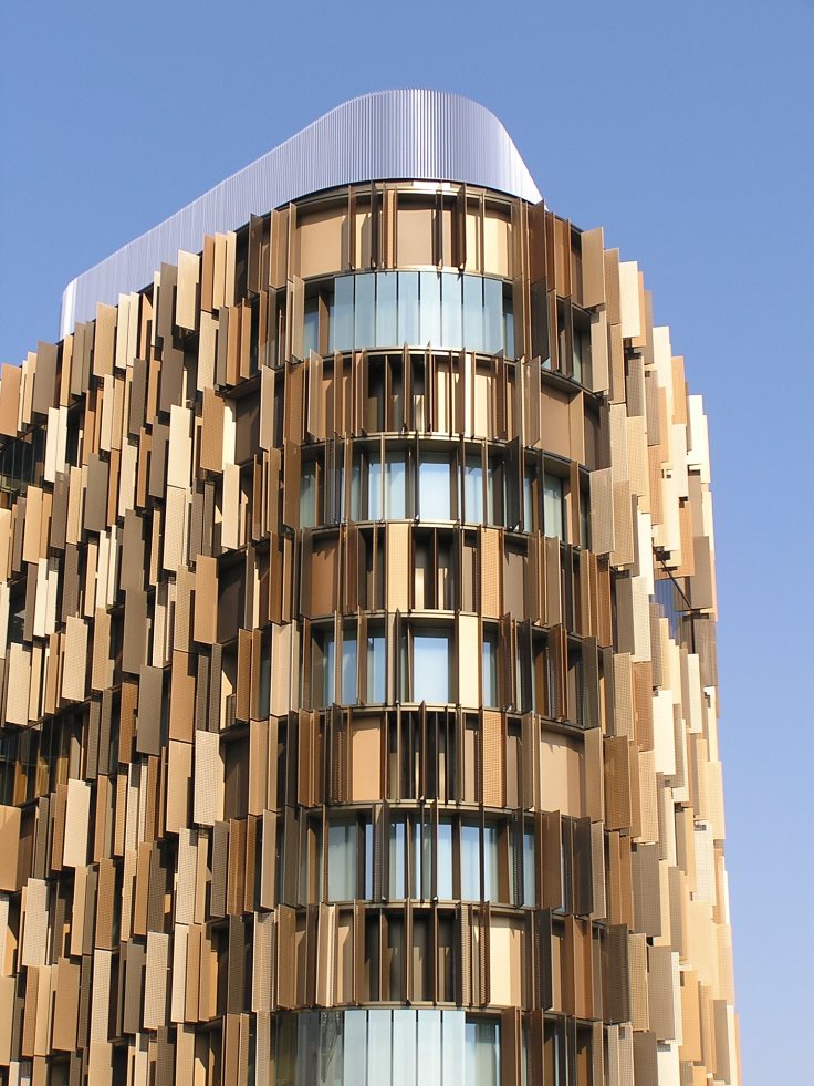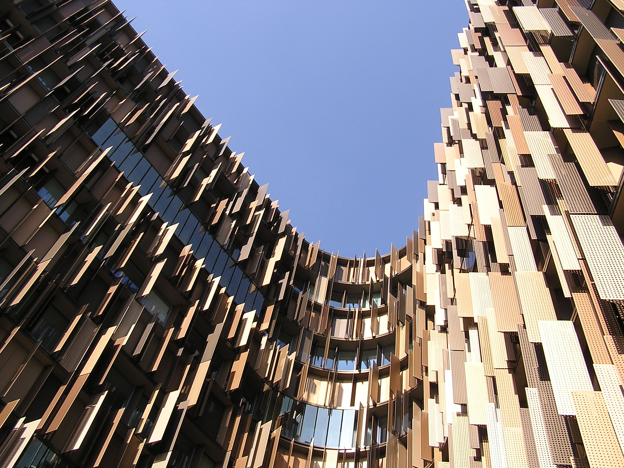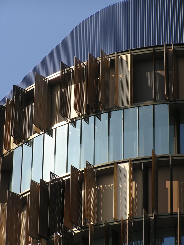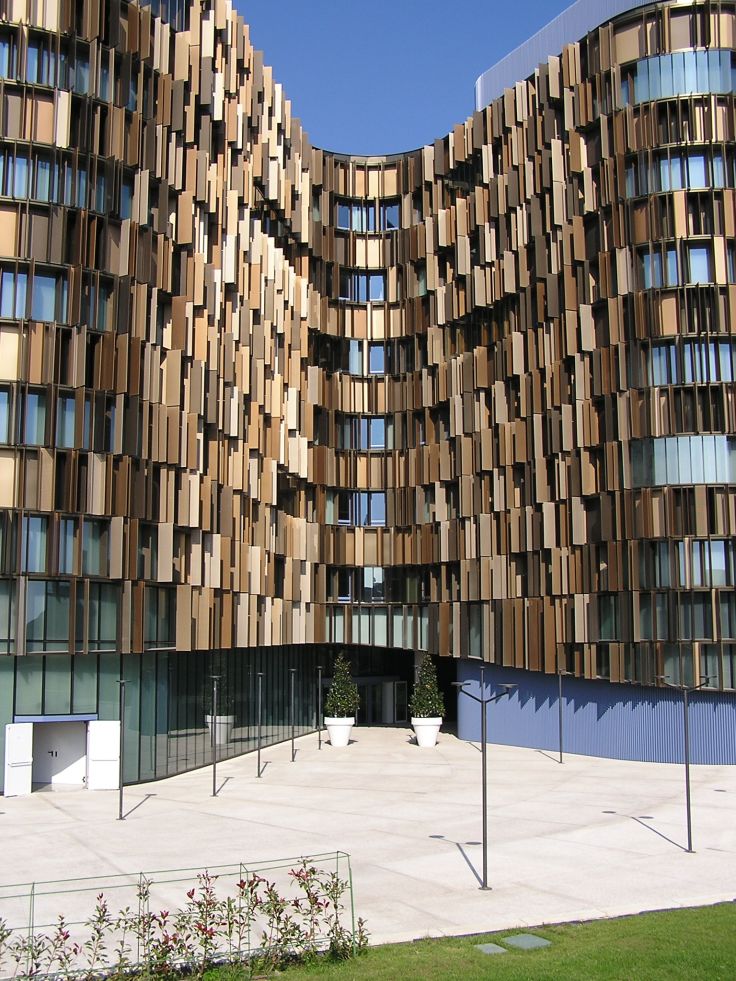 Non deve essere stata una cosa facile, ma il risultato è assolutamente apprezzabile ed accattivante. Un’altro fatto strano che coglie, chi stà di fronte a questo bell’edificio, è che da qualunque parte lo si guardi o lo si fotografi, sembra un render. Mi spiego meglio, sarà l’effetto dei frangisole, dei materiali, dei dettagli, delle forme, ma tra l’immagine che si coglie, sembra più vera del vero, tanto da sembrare finta. E’ una cosa strana, che mi è capitata pochissime volte, e probabilmente testimonia della “cura” con cui l’edificio è stato progettato e realizzato.