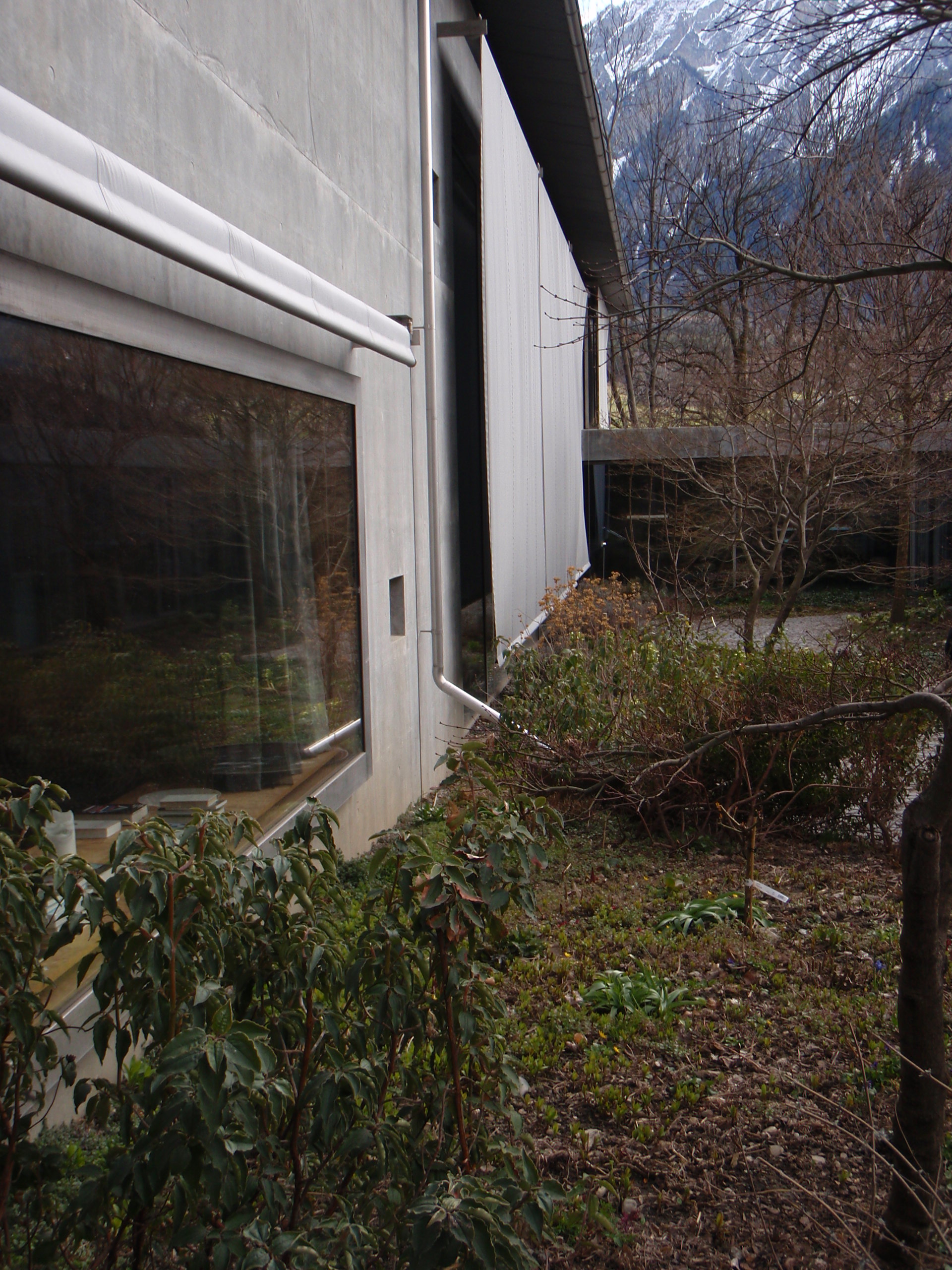 A pochi chilometri da Chur, si trova il paese natale di Peter Zumthor. L’architetto, seppur abbia acquisito ormai da parecchi anni una fama internazionale, si è sempre rifiutato di abbandonare il suo paese di nascita, ed il luogo, l’atelier, in cui ha incominciato la propria attività. Quì, ha voluto costruirsi una casa-atelier, che si è “stratificata” ed ampliata, nel corso del tempo, divenendo un vero e proprio piccolo villaggio dell’architettura. Alla vecchia casa di famiglia, negli anni Ottanta era stato aggiunto, a poca distanza l’Atelier. Verso il 2009 è stata completata la casa, in calcestruzzo a vista.