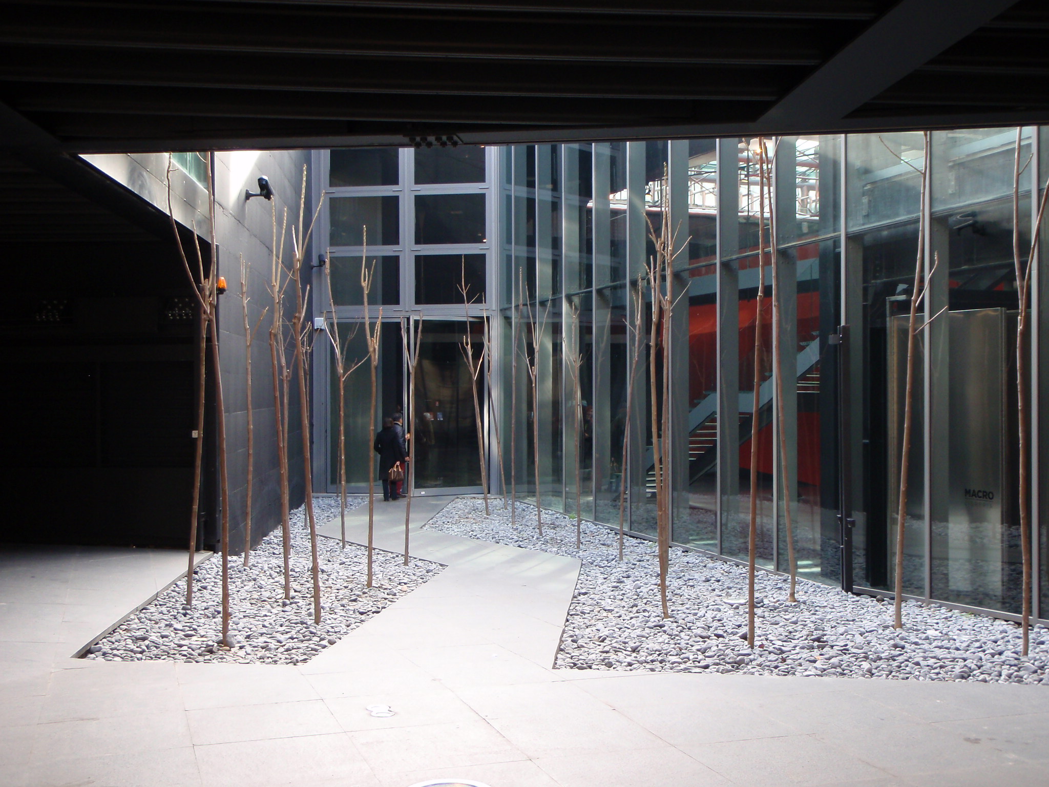 Il MACRO, con l’addizione dei nuovi spazi, pensati da Odile Decq, diventa un luogo museale contemporaneo che illustra il percorso creativo che conduce alla contemporaneità. La nuova e unica entrata del Museo, segna l’ingresso di un’architettura dedicata all’arte, un intero isolato, caratterizzato da una superficie espositiva considerevole, cui si aggiungono le nuove aree dedicate ai servizi e al pubblico: la grande terrazza “sui tetti”, la sala conferenze, la libreria (con ampia dotazione di testi), il ristorante, la caffetteria (molto intima e piacevole), il parcheggio e l’area didattica, per raggiungere una superficie complessiva di 19.590 mq, incluso il parcheggio pluripiano interrato di oltre 160 posti auto, utilizzabile anche dai residenti del quartiere.
