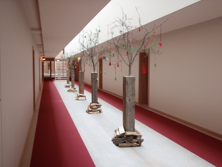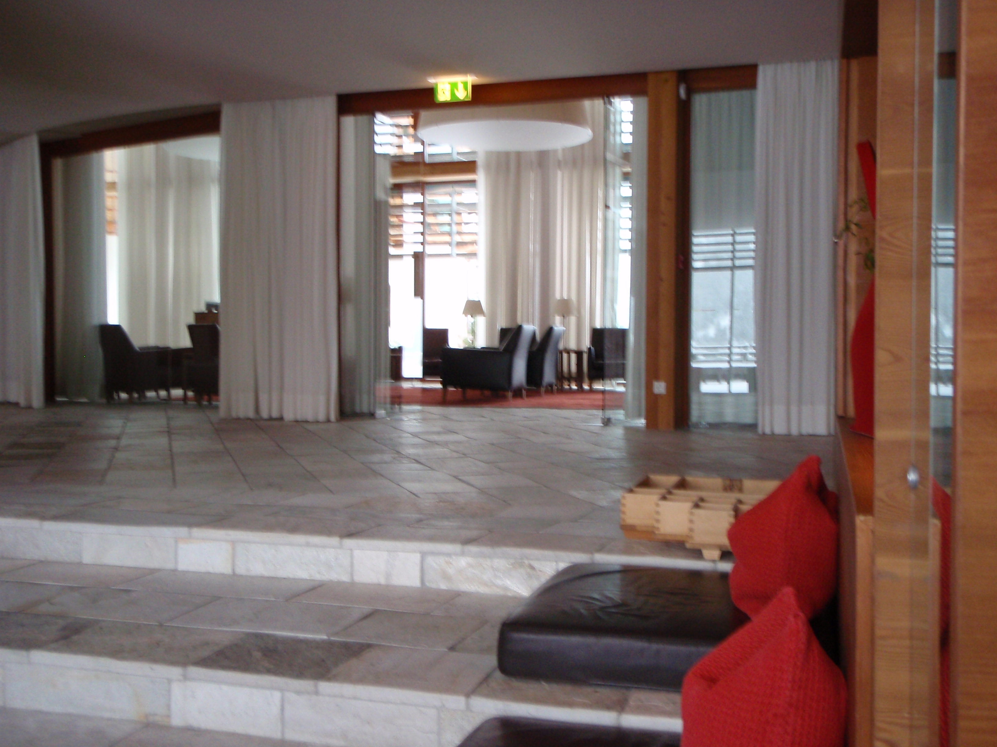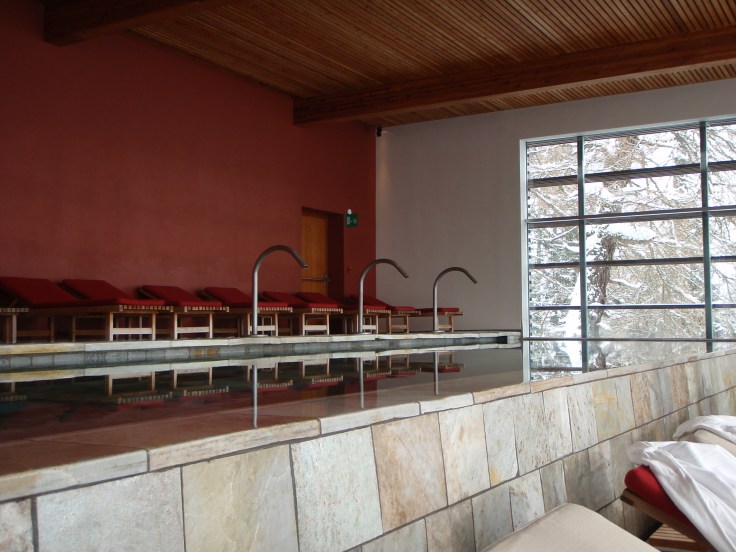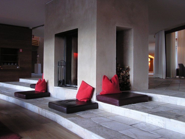 Ecco, quì sul Monte San Vigilio, natura ed architettura sembrano avere trovato un giusto compromesso, un punto di equilibrio possibile, tra consumo di territorio e sua valorizzazione, tra uomo ed ambiente. L’assenza o quasi di mezzi elettronici (televisione e cellulari prendono malissimo), consente, mercè anche il rapporto con l’acqua e la natura incontaminata dei boschi di montagna (di larici ed abeti), di recuperare una dimensione temporale “biologica”, una “lentezza” più naturale e consona a noi umani. E’ questo il vero motivo del successo che ha il Resort, perennemente occupato (nonostante gli altissimi costi) da una moltitudine di persone provenienti da tutte le parti del mondo.