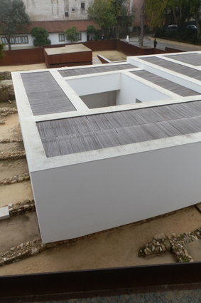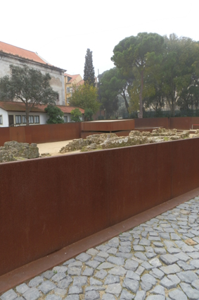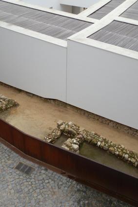 In questo luogo (Praça Nova) nel 1996, si era deciso di costruire un parcheggio auto, per i visitatori del Castello di San Jorge, che domina dall’alto Lisbona. Gli scavi archeologici però, hanno evidenziato sin dall’inizio, le tracce di un’antica occupazione di questo luogo. Nel 2008, Joao Luis Carrilho da Graça è stato incaricato di realizzare un progetto per la valorizzazione di queste importanti vestigia. Nel 2010 è stato inaugurato il complesso, che con le sue forme architettoniche, illustra meglio e valorizza questo luogo. Si tratta di un intervento “intrusivo”, per nulla in soggezione con le “ruine storiche” : vestigia dell’età del ferro (VII sec. a.C), vestigia di un’abitazione residenziale di epoca islamica (XI sec.), vestigia del palazzo medioevale Condes de Santiago, distrutto per un terremoto nel 1755 . Un muro di acciaio corten, definisce lo spazio scenografico degli scavi, e varie costruzioni leggere (in cartongesso per esterni), semplici, quasi astratte, sono asservite a proteggere in maniera intelligente le rovine archeologiche. Il moderno dialoga con l’antico, ed al contempo lo tutela per il futuro. Un intervento calibrato, magnifico, e soprattutto sapiente.