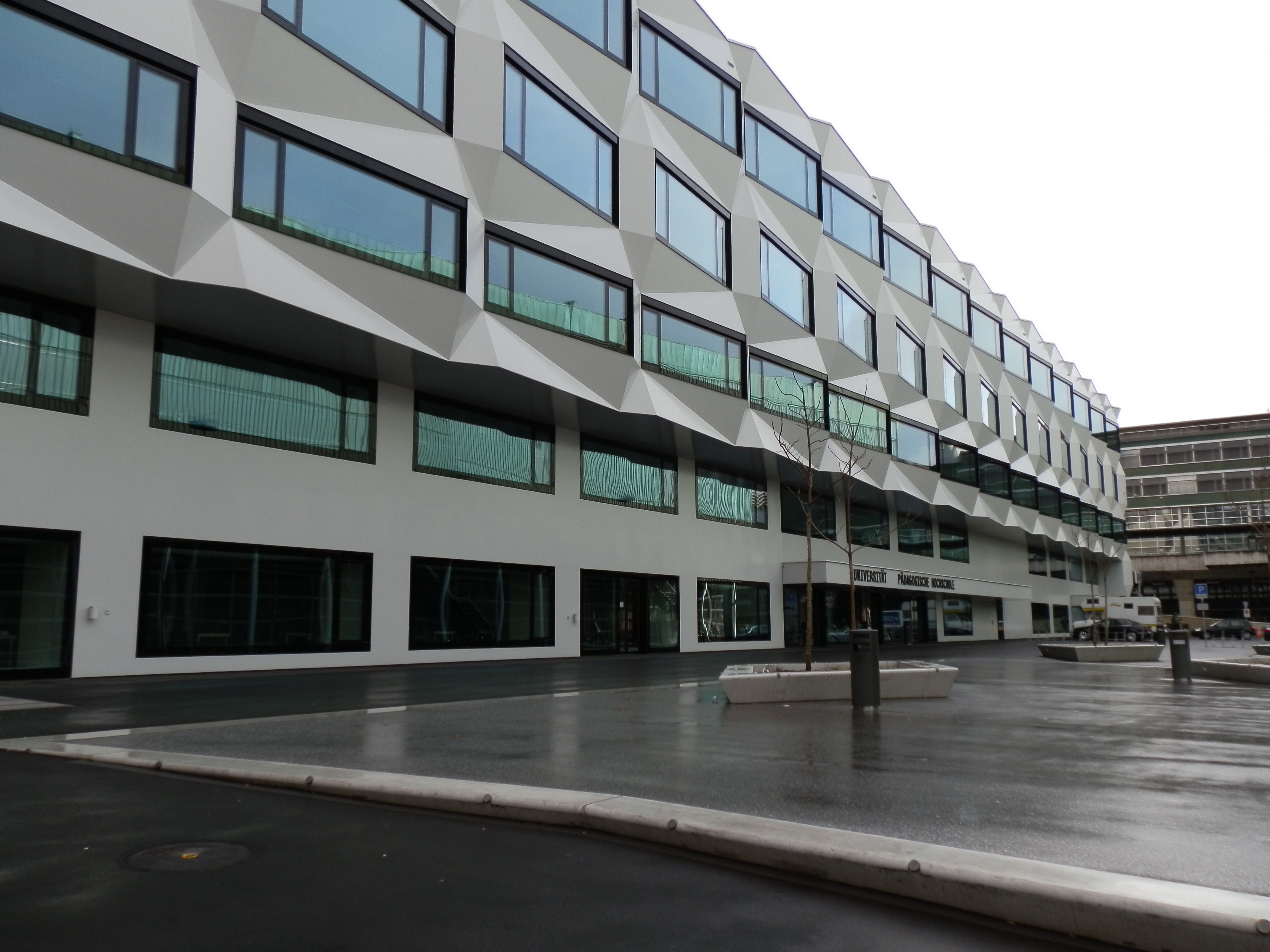 Si tratta di un progetto per dare una nuova identità all’edificio esistente (ex sede delle Poste Svizzere di Lucerna), che viene rifunzionalizzato a sede universitaria (PHZ Luzern – Pädagogische Hochschule Zentralschweiz), e quindi, da bando, deve avere una forte espressione architettonica, pur soggiacendo ai vincoli del recupero delle strutture dell’edificio esistente. Non bisogna anche dimenticare, dall’altra parte, lo stretto rapporto spaziale, sia con l’edificio della Stazione di Lucerna (opera di S. Calatrava del 1989), sia con il silos dei parcheggi retrostante, e soprattutto con l’antistante KKL di Jean Nouvel (del 1999) . Questo edificio, che i progettisti stessi definiscono “Città di Finestre” si propone quale “pelle accattivante”, che gioca con la luce, con la texture, per generare, su ogni lato (visto che si confronta con realtà completamente diverse), delle liaison, a volte pericolose, ma sempre perfettamente riuscite.