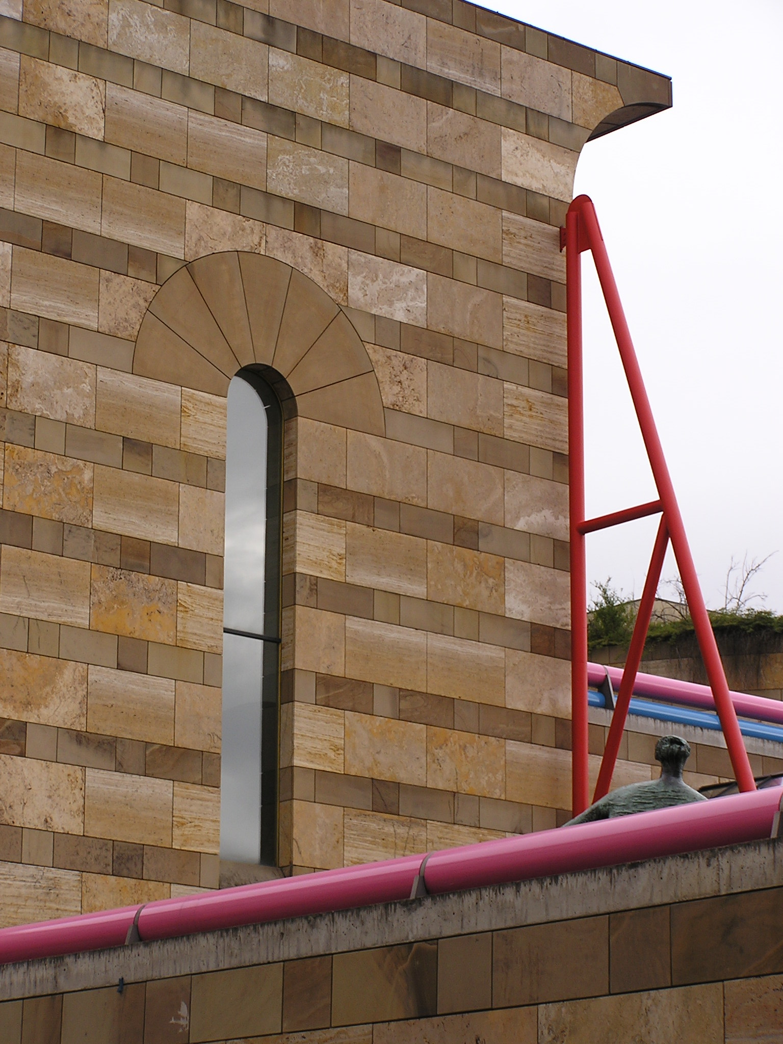 Alla fine dell’anno 1989, mi trovavo a Londra in compagnia di una gentile collega, che poi sarebbe diventata mia moglie. L’obbiettivo era duplice, visitare la città e soprattutto, per ambedue, visitare le architetture di un signore nato a Glasgow, che aveva “sconbicchierato” le regole dell’architettura moderna. Ma la prima tappa londinese, obbligata per ogni architetto, fu la casa – museo di Sir John Soane, al numero 13 di Lincoln’s Inn Fields (http://www.soane.org/). Alla fine della visita, affascinati ed ebbri, dai “deliri” collezionistici e degli “equilibrismi” stilistici di questo grande architetto inglese (tra Settecento e Ottocento), ci recammo, quasi per reazione, a visitare la Whitechapel Art Gallery (http://www.whitechapelgallery.org/), progetto di ampliamento e ristrutturazione di Colquhoun, Miller and Partners, completato nel 1984. Li, si teneva una mostra di arte moderna concettuale, che ci sembrava essere la giusta contrapposizione all’attività di Soane. Si accede alla Whitechapel, dal vecchio portale della galleria, progettata da Harrison Townsend nel 1898 e completata nel 1901. Dopo l’entrata ed una piccola reception, si passa ad una grande sala (Main gallery), che consente anche di avere accesso ad una serie di sale minori e ad un piccolo “Lecture theater”. Dalla grande sala, una scala rettilinea ampia e molto ben disegnata, conduce alle sale dei piani superiori (Mezzanino, primo e secondo piano). Percorsi i primi gradini, sulla cima della scala (illuminata in sommità da un grande lucernario), apparve una scura ed imponente figura, seguita da un’altra piccola e minuta. Mentre costoro scendevano, noi salivamo. A metà, ci incontrammo, ed ambedue i piccoli gruppi furono costretti a fermarsi, soprattutto per colpa della figura imponente, alta e di una obesità pazzesca. Costui, corpulento e pallido, mentre ci facevamo vicendevolmente le scuse : “Sorry….sorry”, mi accorsi avere dei tratti somatici conosciuti. Mi ci volle poco a capire che si trattava di James Sterling, l’architetto, per il quale avevamo progettato quel viaggio. La mia compagna dopo alcuni sorrisi, ripartì verso l’alto, io seguii l’omaccione, come stregato. Nel mio precario inglese, sfacciatamente, dopo una breve presentazione, ed essermi accertato che fosse proprio lui, gli chiesi come mai era lì. Mi rispose : “Caro amico, bisogna vivere nel cuore della professione, capendo le ragioni anche delle architetture altrui. Perché l’architettura è un’amante sfuggente per venire conquistata senza dedicarle costanti attenzioni”. Poi mi parlò della sua passione per l’Italia, per il paesaggio, per il cibo, per l’architettura, ma soprattutto per la gente. Goloso amava particolarmente i dolci. Infine, molto gentilmente, sorridendomi e salutando, si congedò, e sparì, con il suo accompagnatore, in direzione dell’uscita.