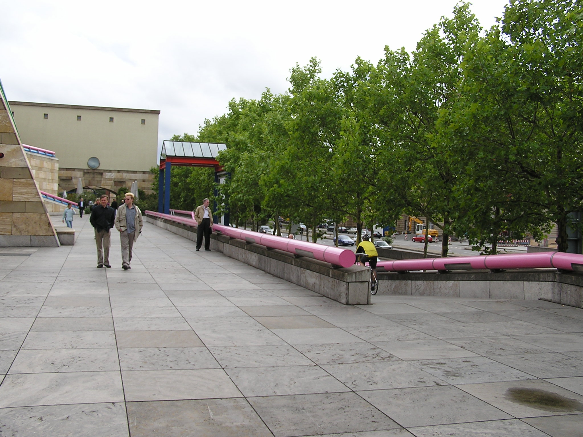 James Stirling muore a Londra il 25 giugno del 1992, a seguito delle complicazioni durante una banale operazione. L’ultima costruzione portata a termine prima della morte è la libreria nei giardini della Biennale di Venezia (completata nel 1991), disegnata in collaborazione con Thomas Muirhead. Nel 1981, Stirling vinse anche il Pritzker Prize per l’architettura. Fu probabilmente il maggiore interprete dell’architettura moderna, evolvendola e rinnovandola. Si accalorava quando i più, appellavano banalmente, la sua attività come post-moderna . L’edificio che fu apice della sua attività progettuale è certamente la Neue Staatgalerie di Stoccarda (http://www.staatsgalerie.de/) del 1983. Si tratta di un intervento di ricostruzione del paesaggio urbano della città della Germania, che genera una serie sorprendente di occasioni spaziali e di relazioni tra le parti urbane, con chiari riferimenti alla memoria paesaggistica delle città italiane.