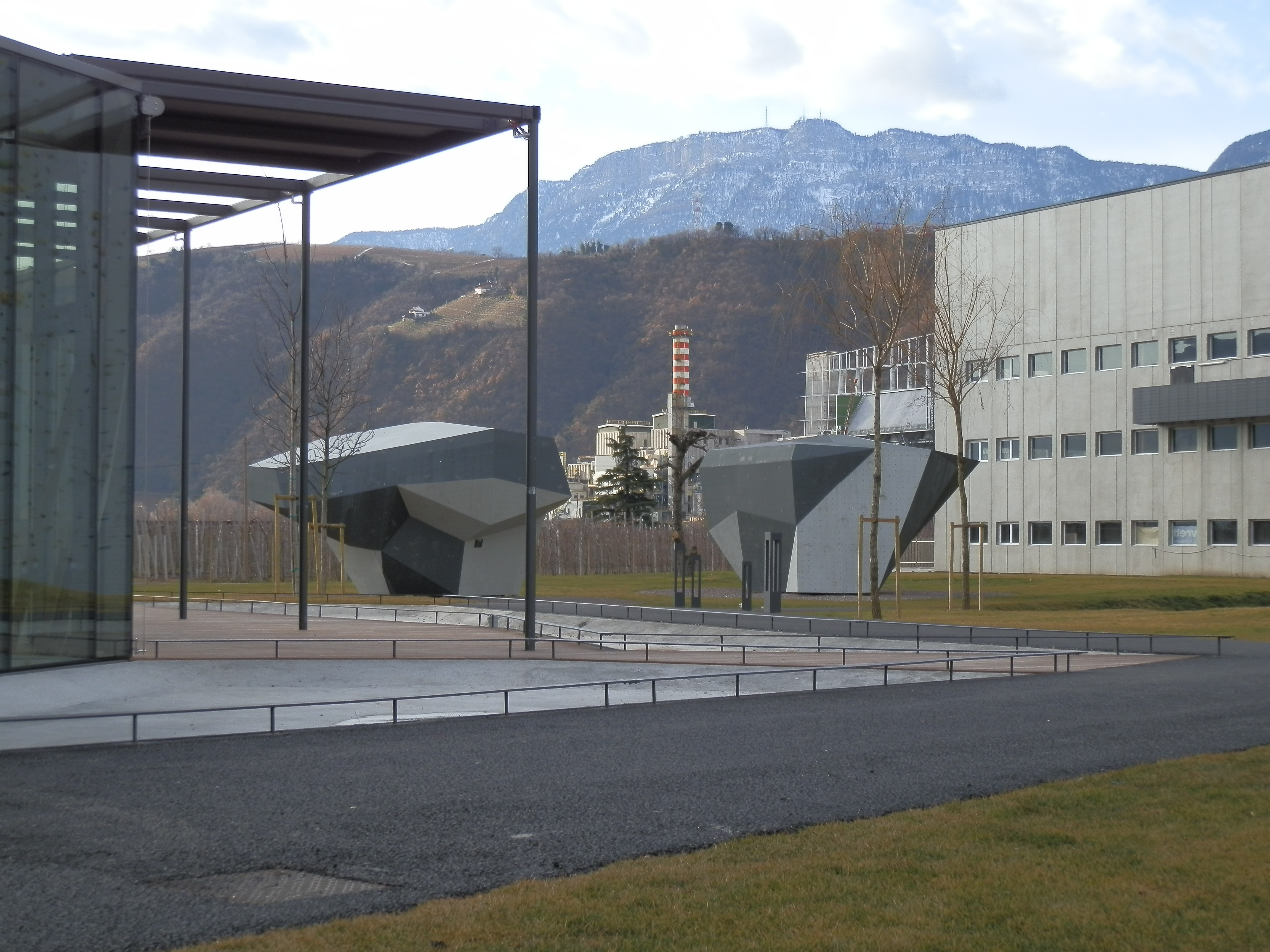 L’architettura progettata, per la sede di Salewa World (marchio internazionale di prodotti per l’alpinismo – http://www.salewa.it/) genera un volume cristallino, complesso, multi sfaccettato, che si confronta (anche rispecchiandole nelle facciate vetrate) con le montagne dell’intorno, articolando una serie di “paesaggi” esterni ed interni in dinamica relazione con le differenti condizioni di affaccio dell’intorno : l’autostrada A22, la periferia industriale di Bolzano, la coltivazione dell’uva.