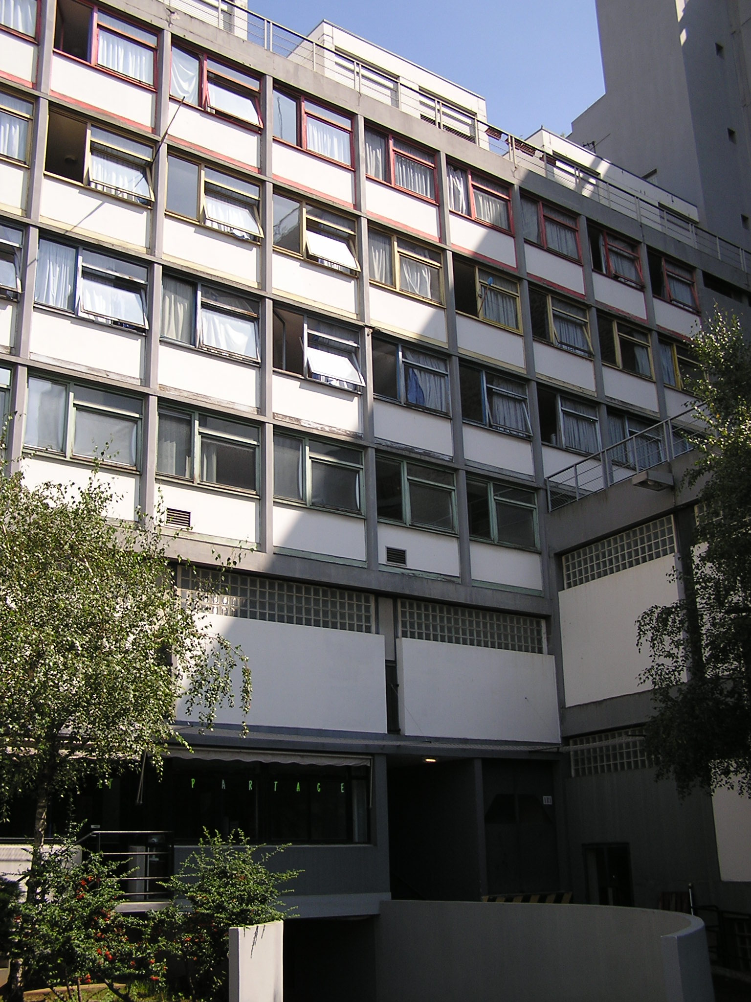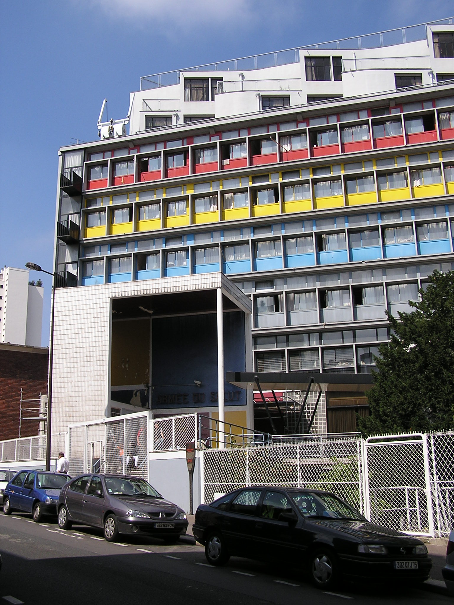 Il lotto, compatto, ha fornito l’occasione per un approccio radicale, sia nel portare tutti gli ambienti verso la luce, sia a generare spazi inconsueti. Soprattutto per dare una collocazione insolita alle sale d’ingresso, in modo da generare un processo, percepibile di accoglienza, a cui era vocato l’Esercito della Salvezza. Il cuore progettuale, voluto da Le Corbusier, era la “stecca” dormitorio, dominata da una grande parete a strapiombo, con una cortina di vetro (di oltre 1000 metri quadrati). Fondamentale per il successo di questo elemento/parete di vetro , avrebbe dovuto essere un sistema tecnologicamente ambizioso ed ardito, di doppi vetri e aria condizionata ( definito come “espiration exacte“). Questi non sono mai stati costruiti come previsto, e l’effetto di pelle pura e semplice della parete è stato definitivamente perso. Lo stesso Le Corbusier, apportò delle modifiche, in seguito all’edificio, applicando dei Brises soleil (poi rimossi), nel tentativo di impedire che i locali avessero un surriscaldamento eccessivo, soprattutto durante i mesi estivi. Un edificio complesso, che anche nei colori delle facciate, ci fa capire di essere qualcosa di nuovo, di innovativo.