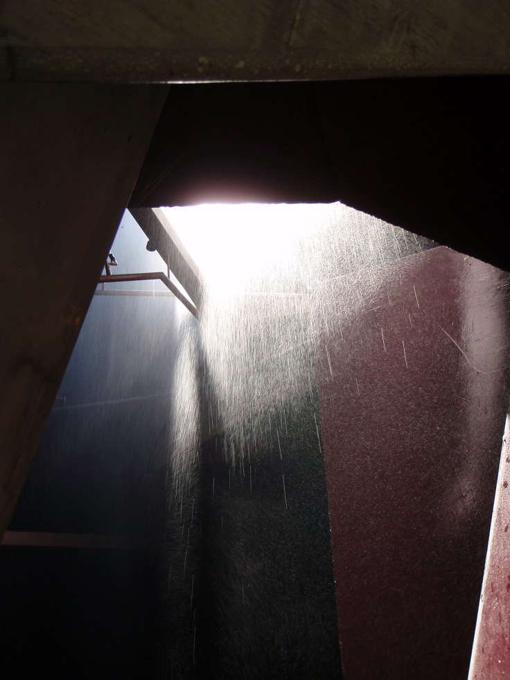 È molto probabile, che i riferimenti adottati nell’ideazione del progetto, siano mirati ad un’architettura “tecnica”, quasi meccanica, di anteposizione netta (ed al contempo di comprensione) all’amenità paesaggistica e naturale dell’intorno. Infatti Marie-Therese Harnoncourt ed Ernst J. Fuchs, fondatori dello studio the next ENTERprise architects hanno sempre dichiarato la loro attenzione per le architetture di Coop – Himmelb(l)au, capostipite di un linguaggio architettonico “radicale” molto diffuso in Austria. Quì, ai bagni di Caldaro, modernità è tradizione, si fondono, si compenetrano, lanciandosi assieme verso il futuro, come deve sempre avvenire affinchè si costruisca il presente; infatti anche il vecchio hotel “in stile altoatesino” è stato abilmente inglobato nella nuova struttura. Calcestruzzo a vista, resine, legno ed acciaio inox, convivono assieme, in un meltin pot, quasi perfetto.