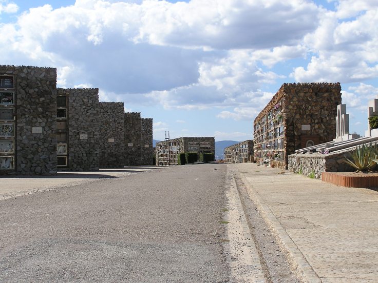 Così scrive Jacques Derrida. Il cimitero, come insieme di edifici per i morti, di vie per i morti, avendo quasi sempre un limite, una recinzione, si configura come una città; nella città dei morti il rapporto privato con la morte torna ad essere rapporto civile. Quindi cosa ha il cimitero rispetto alla città? Ha che qui, il tempo, viene consumato con una velocità diversa. In un cimitero tutto è previsto, programmato, il tempo possiede una “misura diversa”. In quanto ha il cimitero, rispetto alla città, un paesaggio diverso, un paesaggio “finito”.
