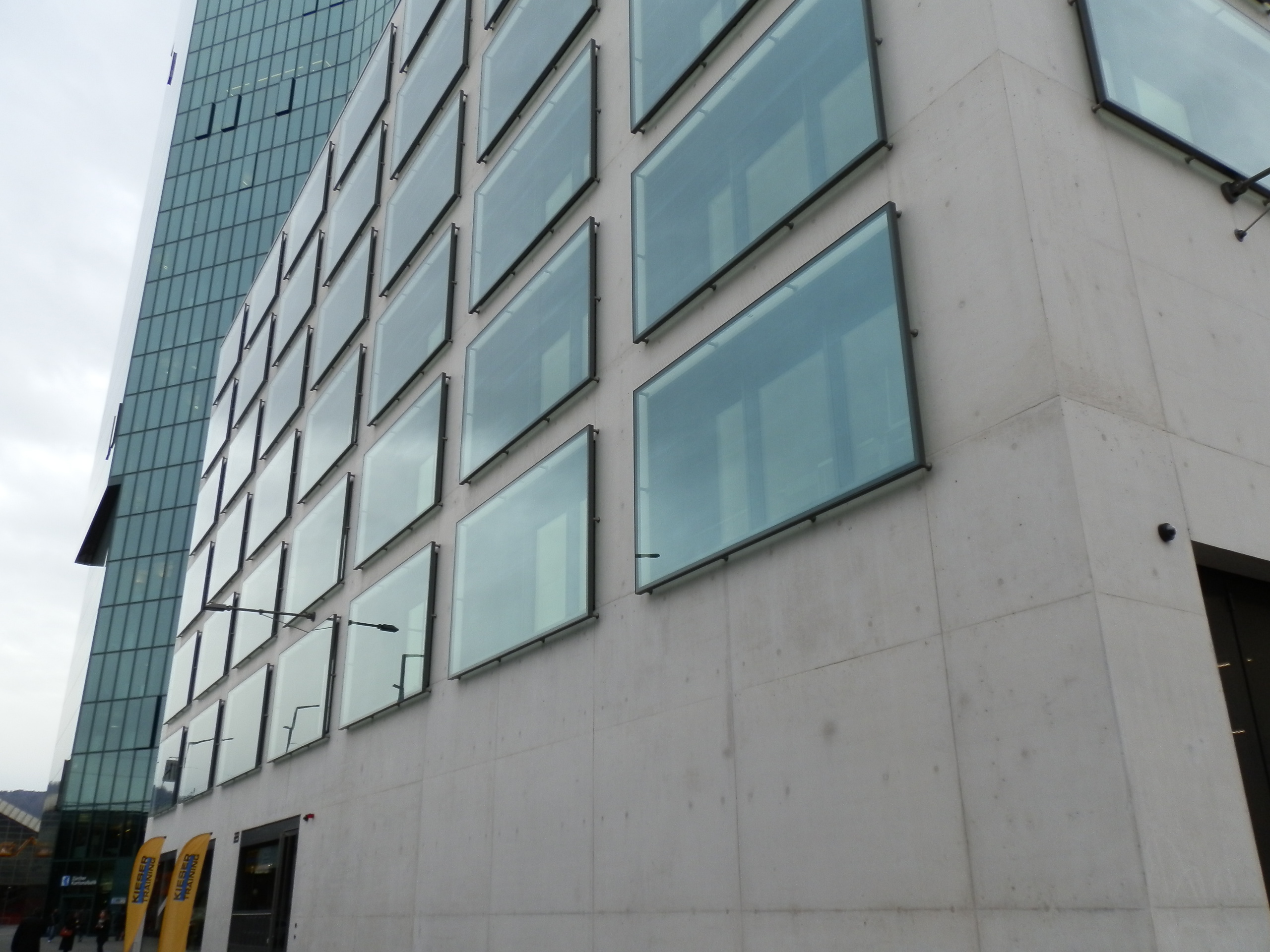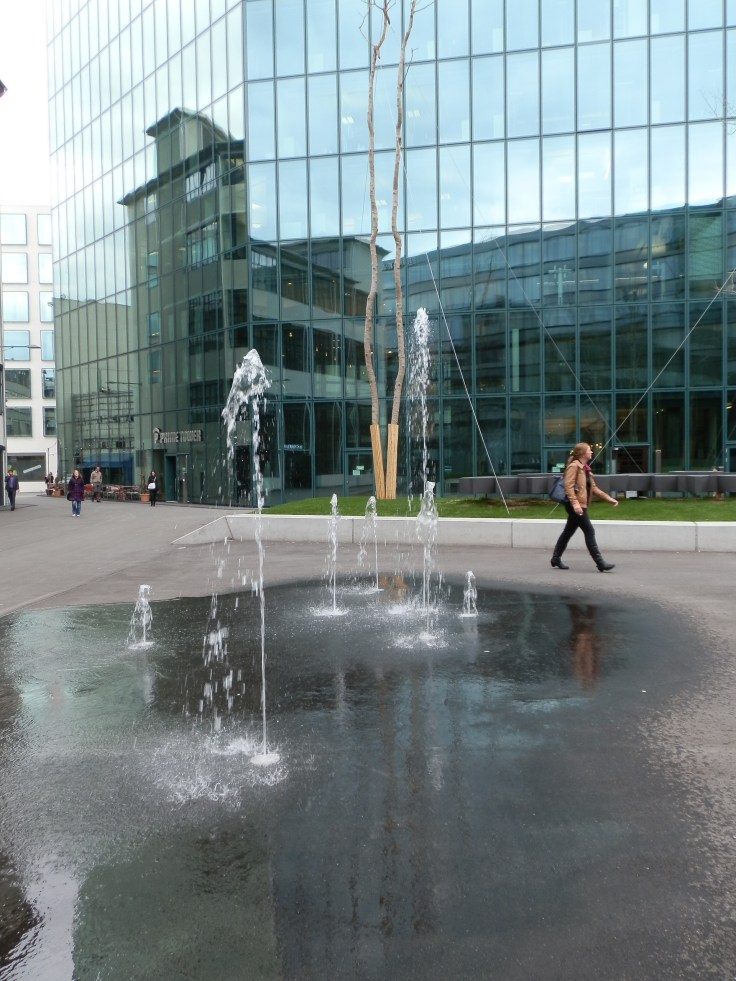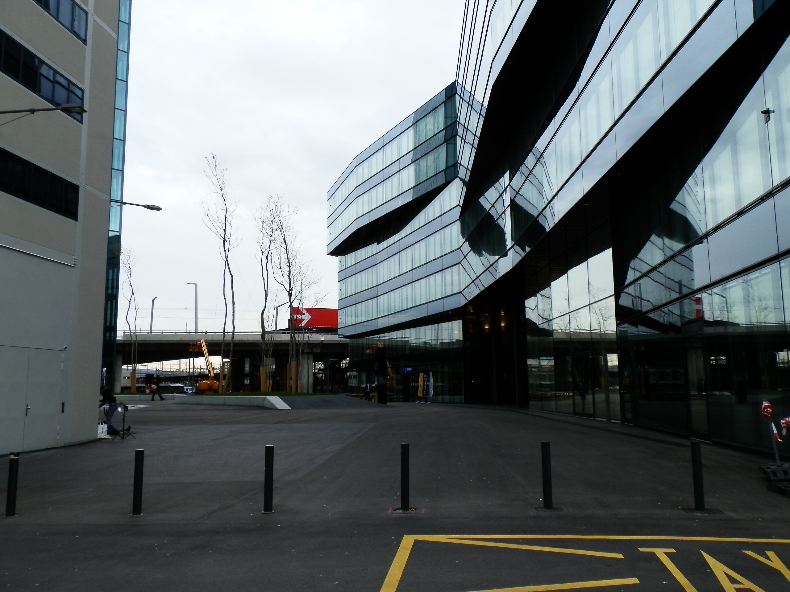 L’intervento ha anche interessato la sistemazione di tutto l’intorno del lotto, una ex area dismessa. Sono quindi stati realizzati i seguenti edifici : Il “diagonal” che è stato restaurato e comprende al piano terra un ristorante, mentre al primo piano, al secondo ed al quarto piano, due gallerie internazionali; il “cubus” che contiene spazi per piccoli uffici e gli archivi, con in aggiunta, un centro di formazione, una nursery e un negozio di alimentari; la “piattaforma Business Building”, con la sua hall spaziosa, è la nuova sede del Revisore dei conti di Zurigo e della società di consulenza Ernst & Young. Inoltre, ospita un negozio per fotocopie e stampe ed un ristorante. Al centro del complesso, una piccola piazza verde, con una fontana di quelle radenti la pavimentazione, con getti d’acqua a sorpresa.