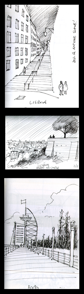 Solo raramente i taccuini di viaggio, Ording & Reda (http://www.ordning-reda.com/int/en-us/), che porto sempre con me, da decenni, hanno una connessione diretta con le fotografie che regolarmente eseguo. Il “libretto” svedese, costosissimo, mio immancabile compagno di viaggio, è costituito da materiali non inquinanti, naturali. La copertina è rigida e realizzata in tessuto ecologico (di diversi colori) montato su cartoncino riciclabile. La carta in esso contenuta è da 100 grammi, realizzata con pasta di cellulosa, per carta di elevata qualità. Spesso i libretti che compilo senza metodo nei miei viaggi, sono semplicemente delle “collezioni” di viste paesaggistiche, di dettagli architettonici, di “pezzi di città”. Quasi sempre contengono “memorie fisiche” del viaggio : piante essiccate, ricevute di ristoranti, biglietti dei trasporti pubblici, autoadesivi, ecc.. Quasi mai sono dei diari, quando lo sembrano, in realtà si tratta di annotazioni, di appunti descrittivi non cronologici. Il viaggio è per me un’occasione di fuga e di studio, al contempo di vacanza, di assenza. Lo studio dell’architettura e del paesaggio, nonché delle società che li hanno generati, consente di avere uno sguardo analitico/critico, che arricchisce il viaggiatore, facendogli apprezzare maggiormente la vacanza e l’unicità del luogo e delle suo genti. Spesso, quando viaggio con amici, non prendo appunti, ed i taccuini rimangono bianchi, una sorta di rispetto per l’amicizia. A volte gli appunti riguardano una ricetta o la realizzazione di un piatto, spesso solamente l’indirizzo di un luogo che mi ha particolarmente colpito. Questi libretti, quando li rileggo, quando li sfoglio, mi accorgo che sono delle vere e proprie “spremute di paesaggio”, talmente concentrate da fare bene al cuore ed all’animo.