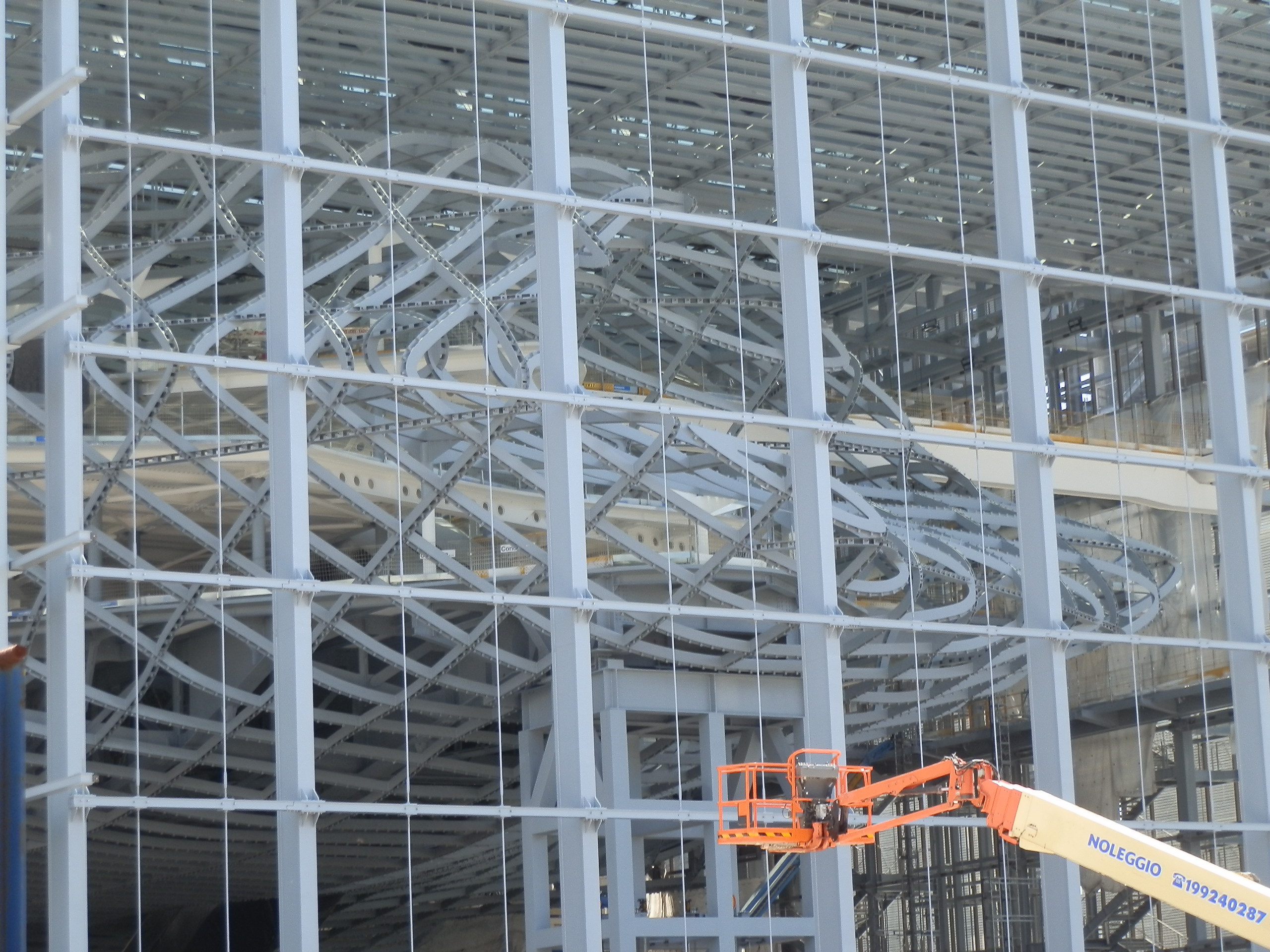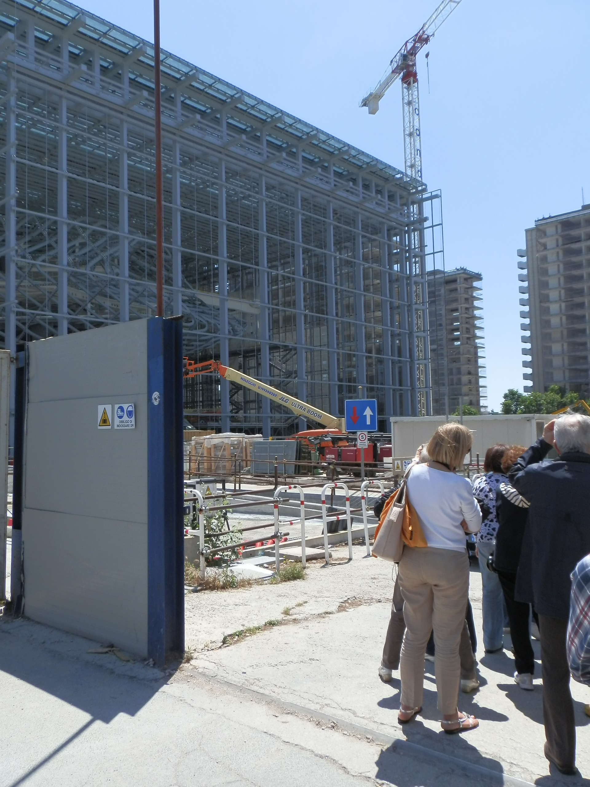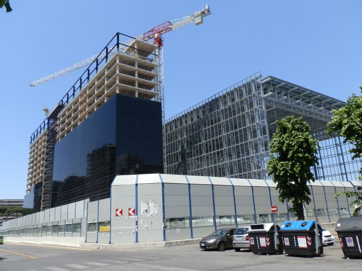 Si stanno completando, lentamente, molto lentamente, i lavori per il nuovo centro congressi dell’Eur a Roma ideato da Massimiliano Fuksas e signora . All’inizio dell’anno prossimo (31 gennaio 2013) forse l’inaugurazione. Il concorso internazionale fu aggiudicato nel 2000, il bando era del 1998. Nel 2003 un consorzio di Bari, si aggiudica il Project Financing (partnership tra pubblico e privato). Il consorzio però non si decide ad avviare i lavori. I costi intanto lievitano e si passa dai 130 milioni previsti nel concorso, ai 225 stimati nel 2006, momento in cui, al consorzio di imprese di Bari, viene interrotto il contratto. L’anno dopo la società Condotte Spa si aggiudica la nuova gara. Il progetto, in corso di ultimazione, consiste in una suggestiva “nuvola’”di fibra di vetro e silicone (auditorium da 1.850 posti), collocata sospesa, all’interno di una teca di acciaio e vetro, trasparente, larga 75 metri ed alta 39 metri . Più in basso, la sala congressi vera e propria in grado di ospitare oltre 8.000 posti a sedere. A completamento del complesso, spazi per la ristorazione, un hotel (440 camere) e parcheggi sotterranei ed esterni. I costi complessivi stimati ad oggi sono di 277 milioni di euro (arredi compresi). Un vero “pozzo senza fondo”, oltre alla consegna dell’opera quindici anni dopo il lancio del bando di concorso! Inoltre a fianco le torri abitative, progetto di Renzo Piano, con già il permesso di costruire in tasca, rimangono ancora un’eventualità, vista la crisi del settore. Viene ovvio chiedersi, se un “oggetto” così costoso, anche nei costi di gestione, come è il progetto del nuovo Centro Congressi dell’Eur, abbia oggi ancora senso.