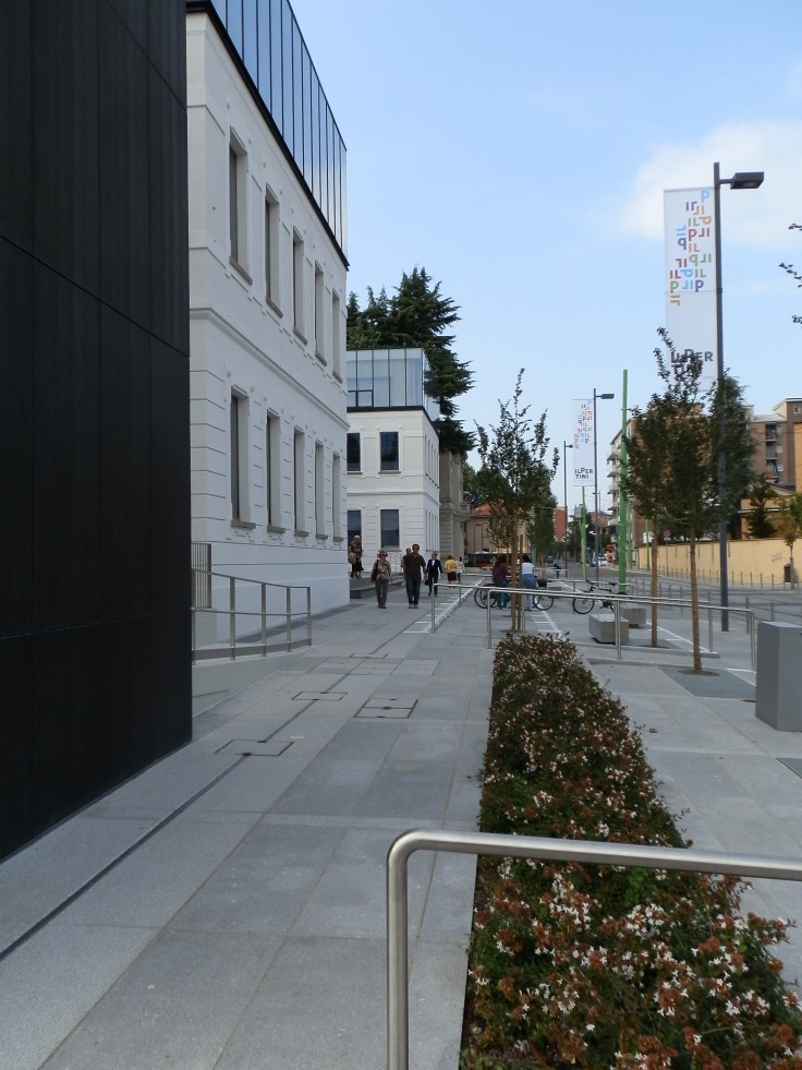 Comunque un buon progetto, ben realizzato, moderno da godersi soprattutto negli interni : comodi, luminosi, accoglienti e razionali, organizzati attorno ad un volume centrale vuoto a tripla altezza. Interni, dove si può tranquillamente trascorrere una mezza giornata senza mai annoiarsi, che però anche, genera degli spazi esterni urbani interessanti e di qualità, che “legano” parti ed edifici esistenti, fino ad ora poco coesi.