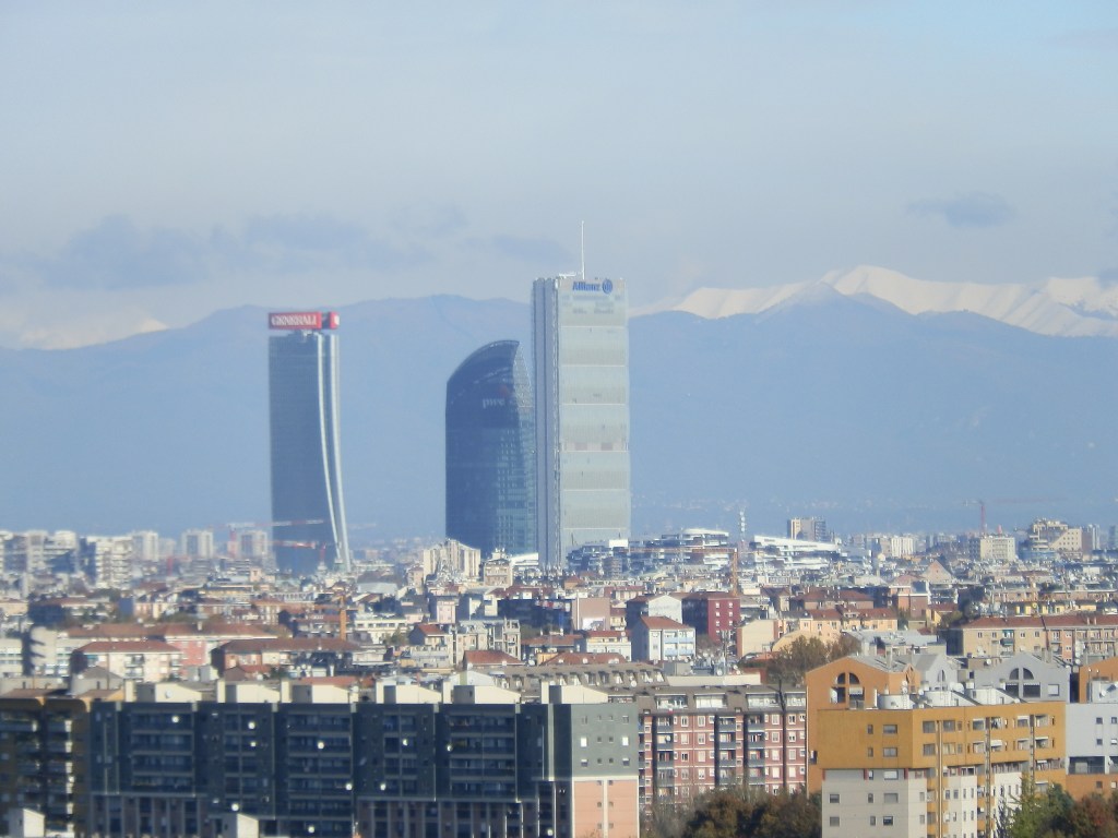 Sono immagini di forti CONTRASTI : il verticale geologico e quello artificiale umano; le linee flessuose dei monti, e le geometrie rigorose dei grattacieli; l’aria terribilmente inquinata della Padania, e l’aria fina e pulita della montagna; il “muro di pietra” delle Alpi, che divide la cultura così detta mittel-europea da quella mediterranea; il Nero fuligginoso della Città, il biancore della neve; Natura ed artificio;……..Natura ed artificio…..