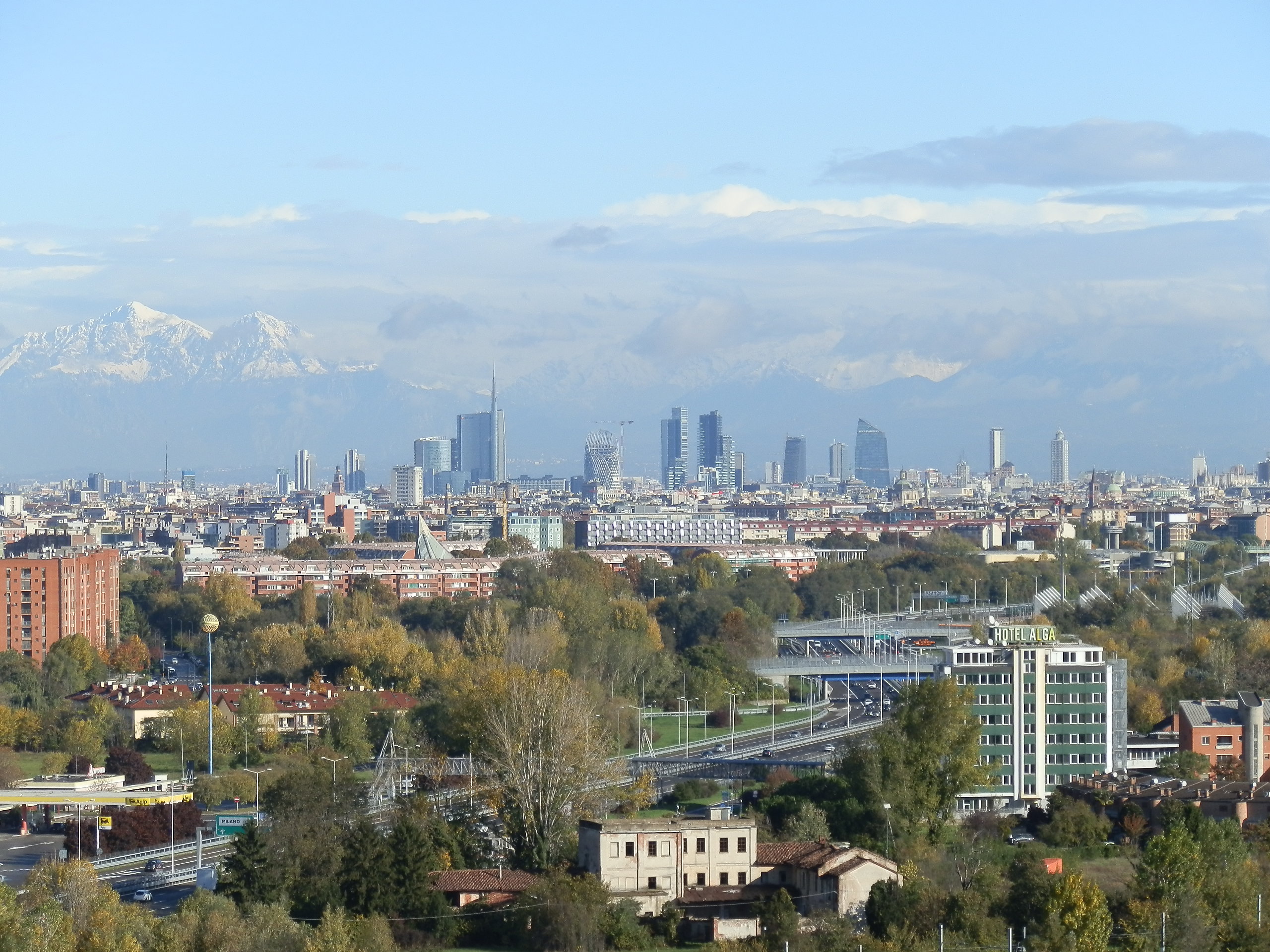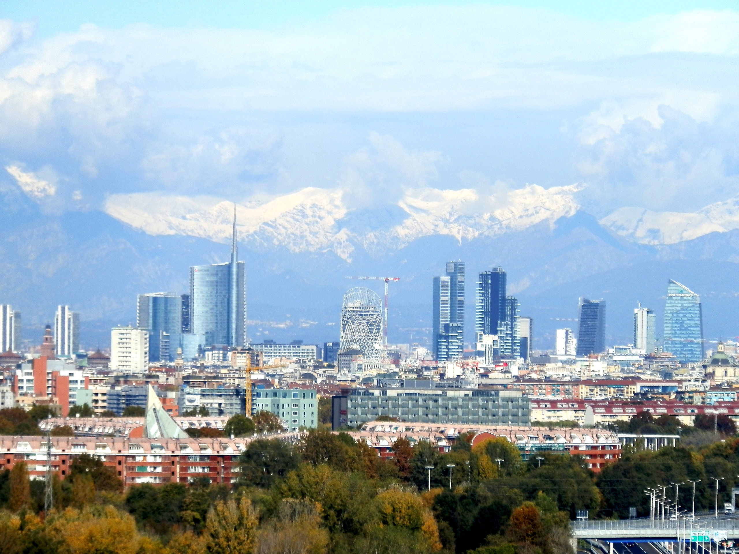 Sono immagini di forti CONTRASTI : il verticale geologico e quello artificiale umano; le linee flessuose dei monti, e le geometrie rigorose dei grattacieli; l’aria terribilmente inquinata della Padania, e l’aria fina e pulita della montagna; il “muro di pietra” delle Alpi, che divide la cultura così detta mittel-europea da quella mediterranea; il Nero fuligginoso della Città, il biancore della neve; Natura ed artificio;……..Natura ed artificio…..