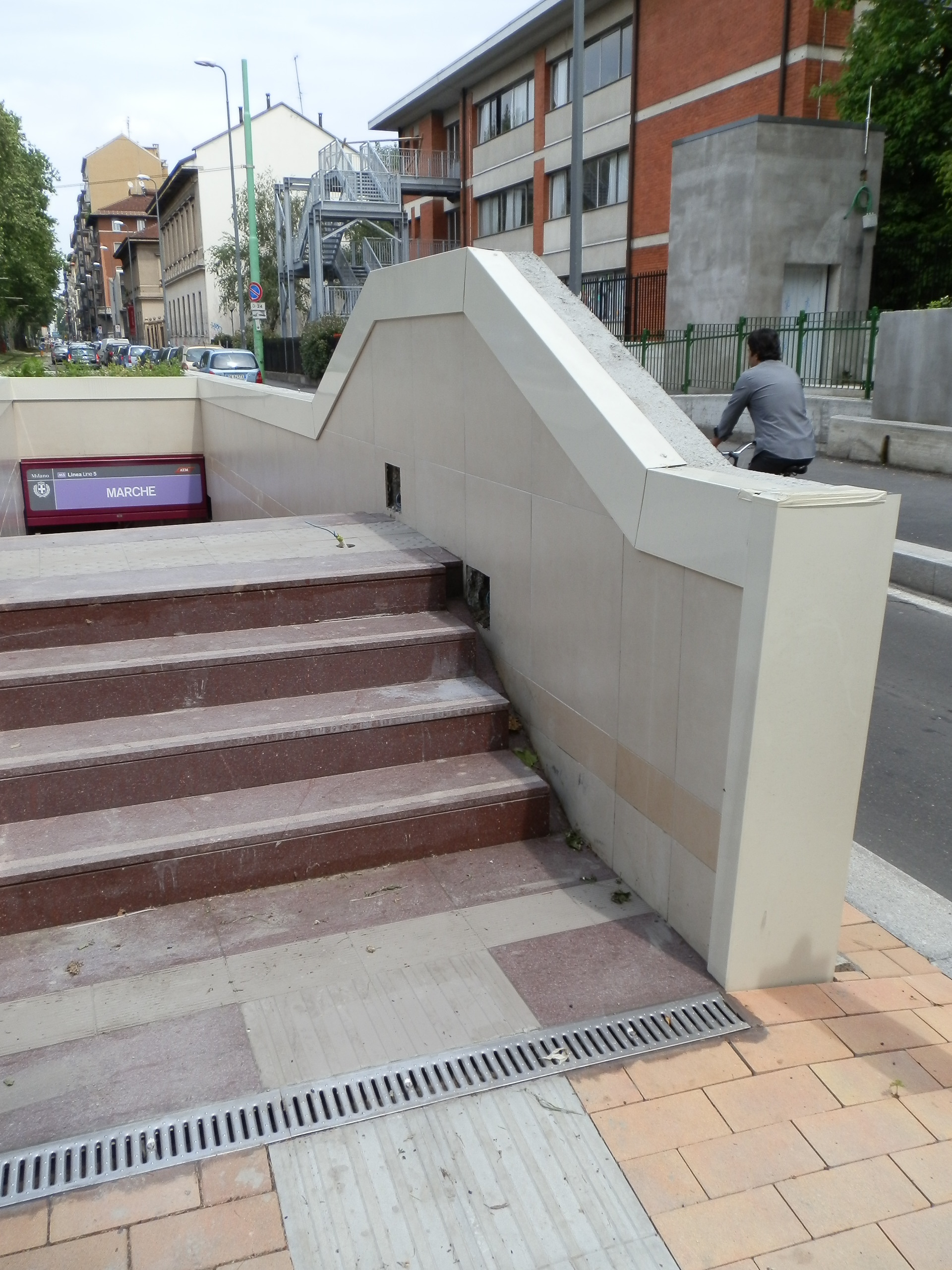 Per i primi di giugno 2012, sarà aperta, in occasione del VII incontro Mondiale delle Famiglie, che si terrà a Milano con presenza del Papa Benedetto XVI, un primo tratto della linea metropolitana M5, già definita linea “Lilla”. Seppur ancora non completate totalmente le stazioni, viene naturale fare alcune considerazioni in merito agli apparati emergenti dal suolo di questa importante infrastruttura : scale, ascensori, ventilazioni, ecc.. Innanzitutto, si è persa l’ennesima occasione per “costruire” un sistema di elementi in grado di definire il paesaggio urbano, gli elementi per caratteristiche compositive e fattura, non contribuiscono a fare arredo urbano, anzi sembrano totalmente avulsi. Senza essere high-tech e quindi magari puntare su un linguaggio di contrasti. La finitura pauperistica di scale, ed apparati di ventilazione, non denuncia l’importante infrastruttura sottostante, nè riesce a sublimarsi fino ad essere veramente brutalista da costituire un linguaggio trasgressivo ed innovativo. La leziosità impera. Il colorino lilla, definito a tavolino quale identificativo della nuova infrastruttura, non aiuta, anzi l’abbinamento con un colore verde crea un evidente imbarazzo cromatico. Il design delle coperture delle scale mobili è banale, quasi brutto, così come la definizione di griglie e di elementi di chiusura. Addirittura comiche le scale “gobbe”, che in prossimità dell’area di periodica esondazione del fiume Seveso (evento mai risolto e forse irrisolvibile), hanno all’inizio, una risalita per proteggere l’eventuale ingresso dell’acqua. Si sale per poi scendere un controsenso in termini che palesa l’incapacità del Comune di Milano di risolvere un problema, l’allagamento di una vasta zona di Milano, che ormai si verifica periodicamente. La grafica poi appare incerta ed approssimativa, quasi fanciullesca. Certo viene da rimpiangere la capacità progettuale, attuata dalla Metropolitana Milanese, per la Linea MM1 (Rossa), negli anni Sessanta, che vide coinvolti nella definizione degli apparati emergenti e delle stazioni lo studio Albini, Helg, Piva, mentre per la grafica, il “geniaccio” Bob Noorda. Lì fu veramente attuata una proposta minimalista e suggestiva di design e di arredo urbano, teso a definire anche all’esterno un paesaggio urbano essenziale, che per anni ha costituito un riferimento a livello internazionale.
