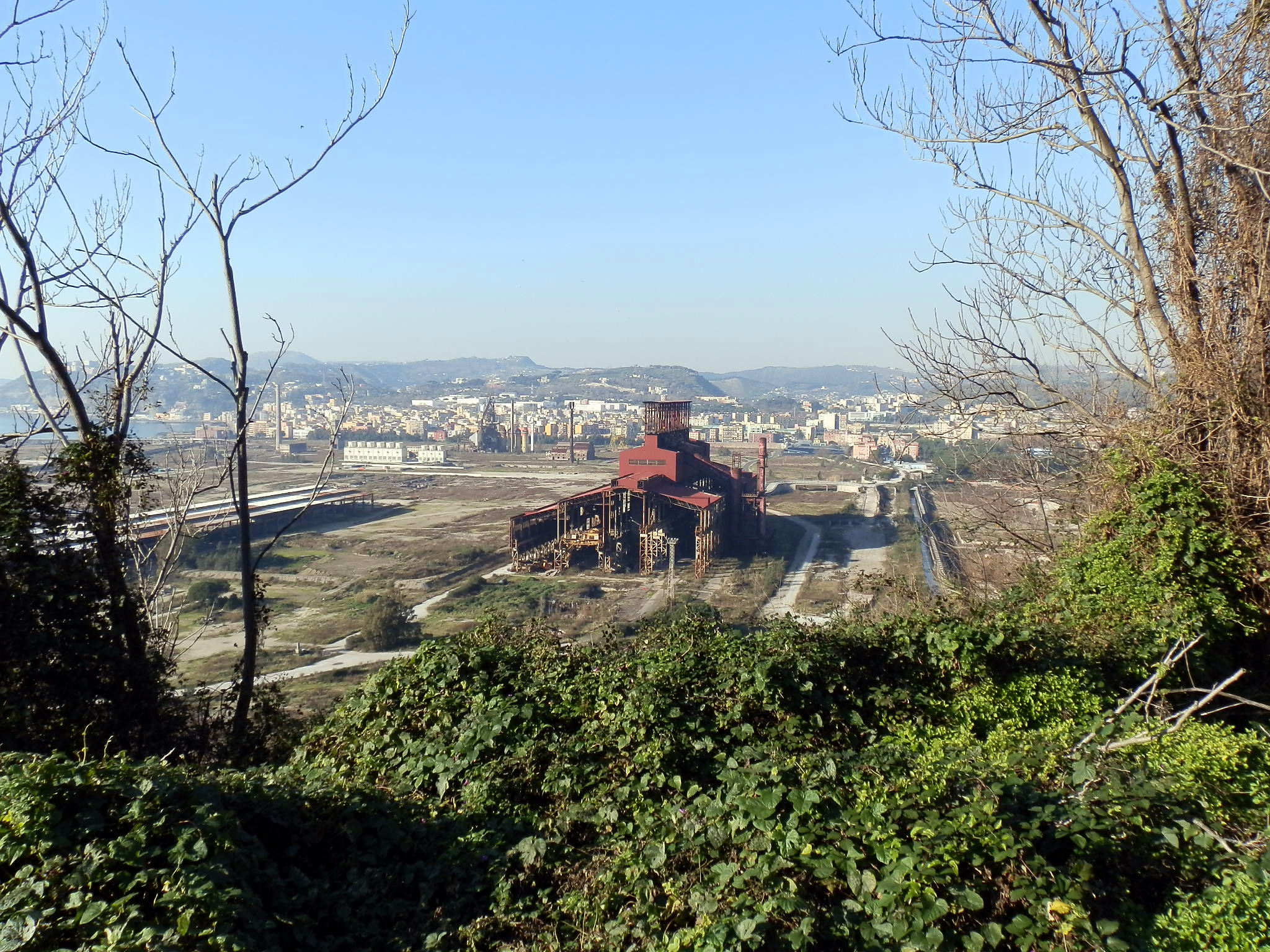 Sopra immagini dell’area ex Italsider di Bagnoli (Napoli)