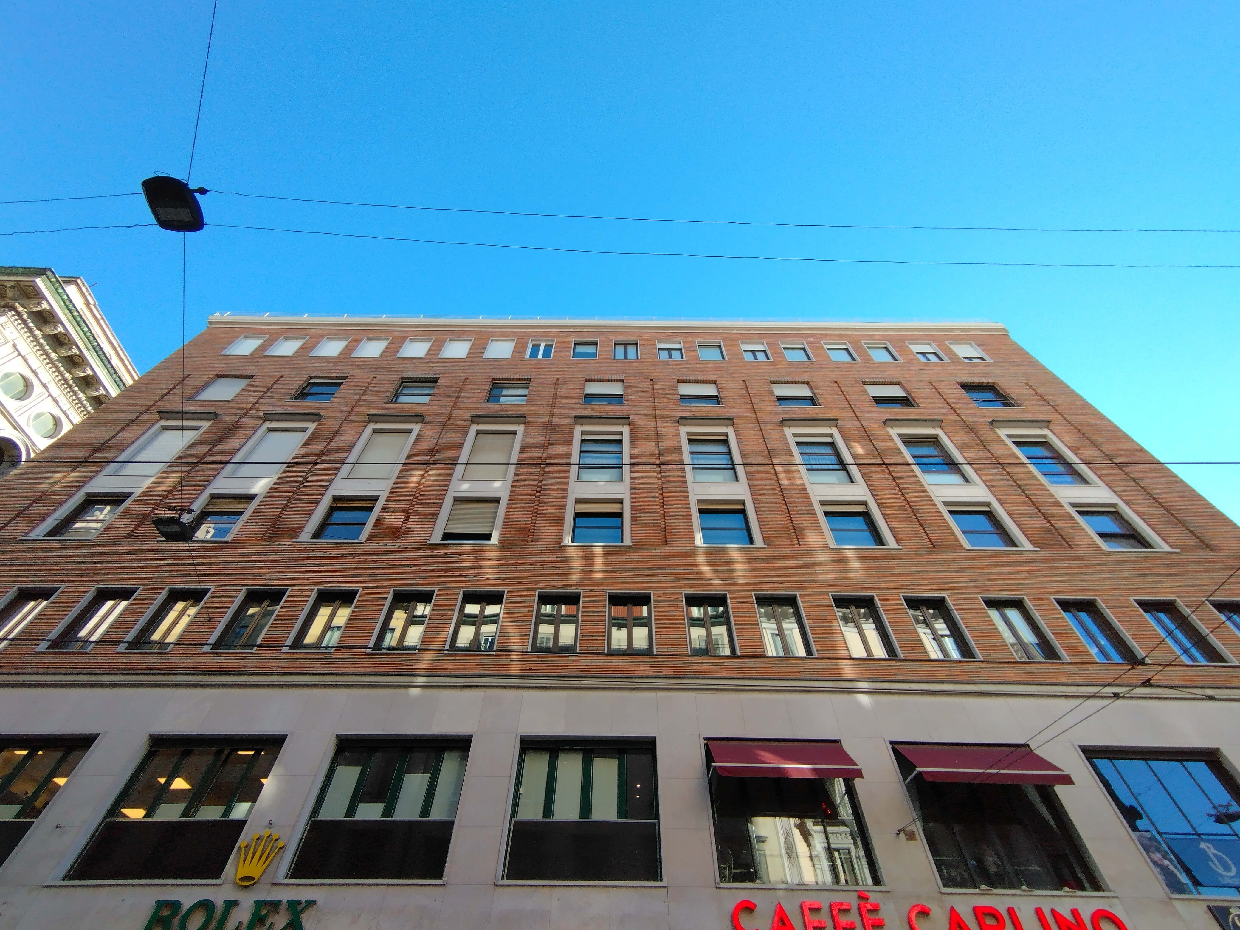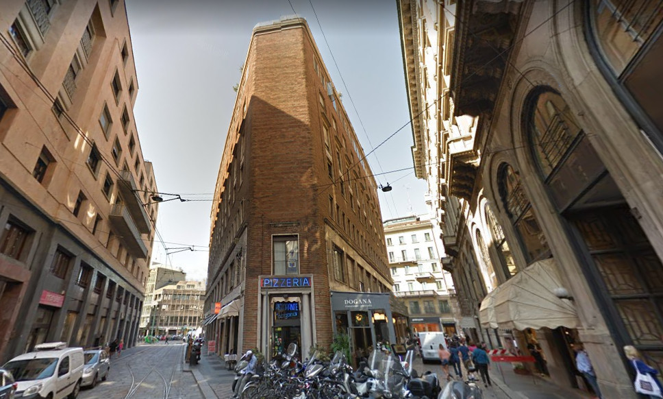 Il problema “classico” dell’angolo, nella costruzione dei “contenitori per esseri umani”, più volte ricorrente nella Storia dell’Architettura, viene risolto nell’edificio di via Dogana 3 a Milano, attraverso la smaterializzazione del punto d’incontro tra le due superfici delle facciate.