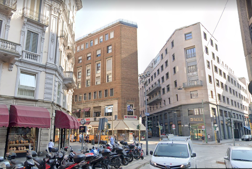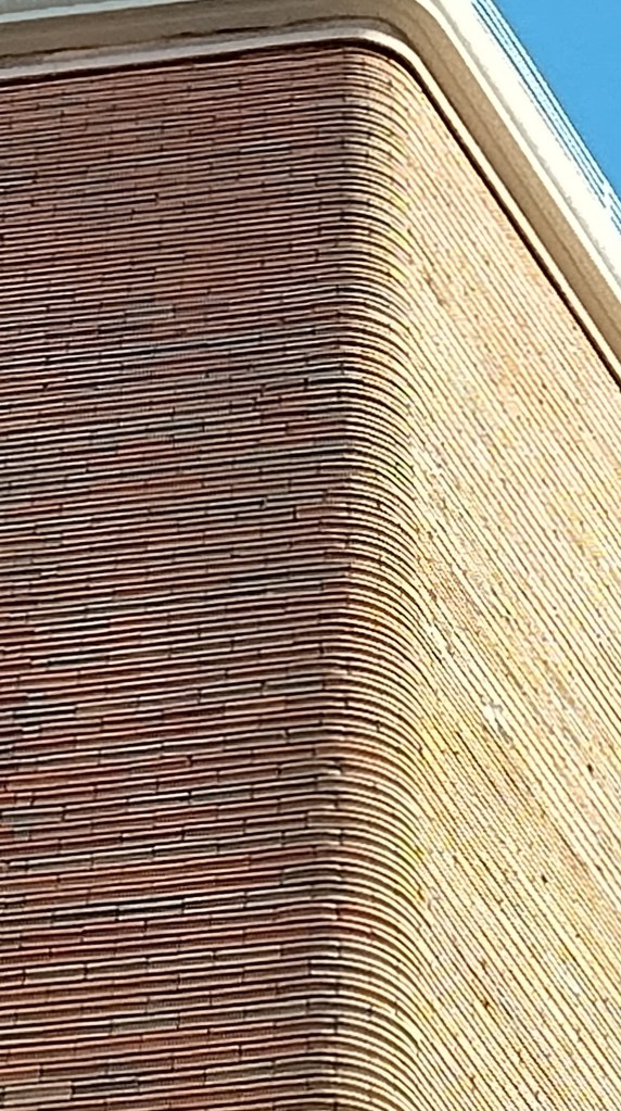 I prospetti, nella curvatura del paramento in laterizio, proprio sull’angolo, si fondono, confermando la continuità dei volumi, ma allo stesso tempo, attraverso la rinuncia allo scontro delle pareti, lasciano intatta l’energia prodotta dalle fughe prospettiche.
