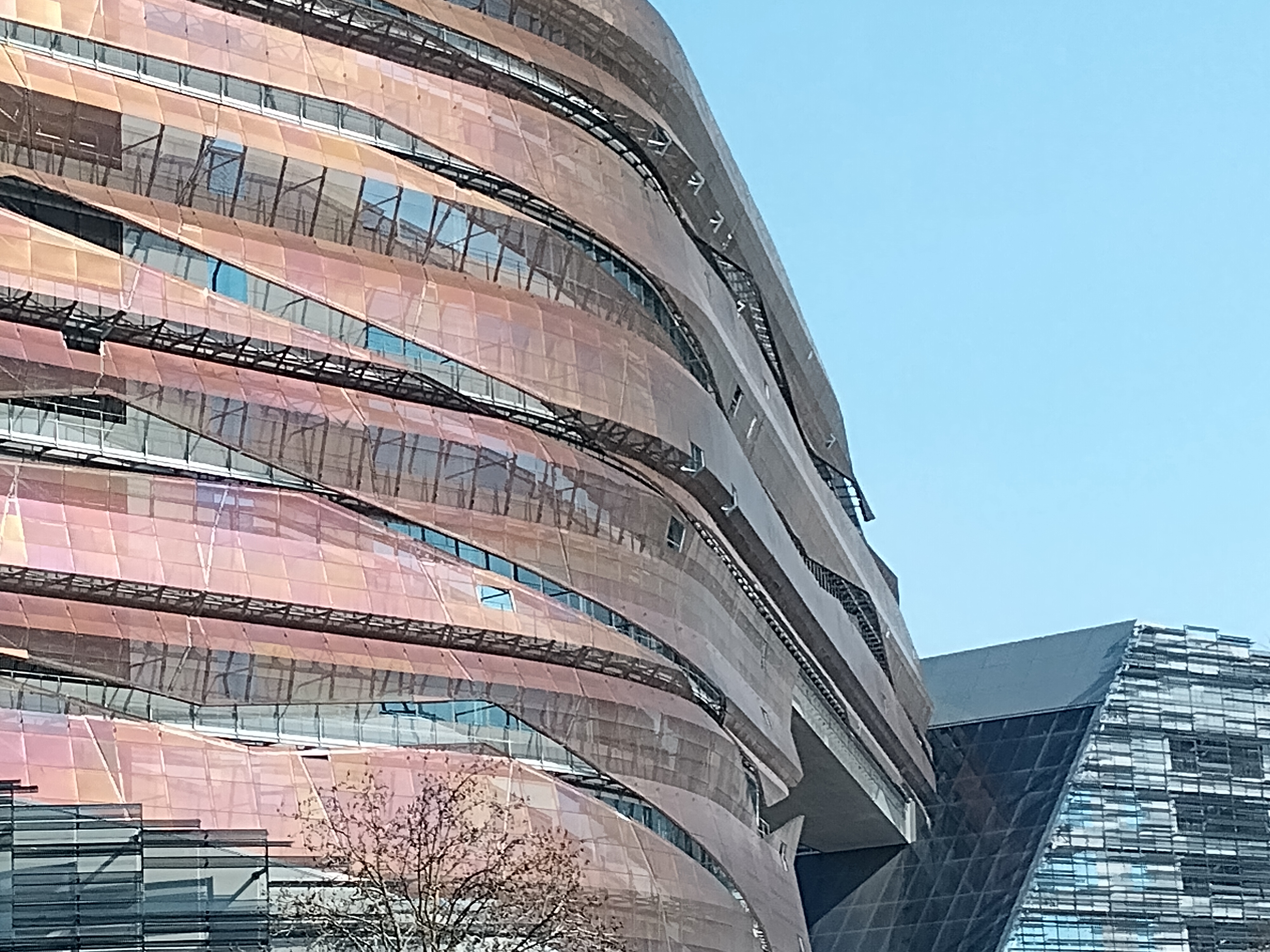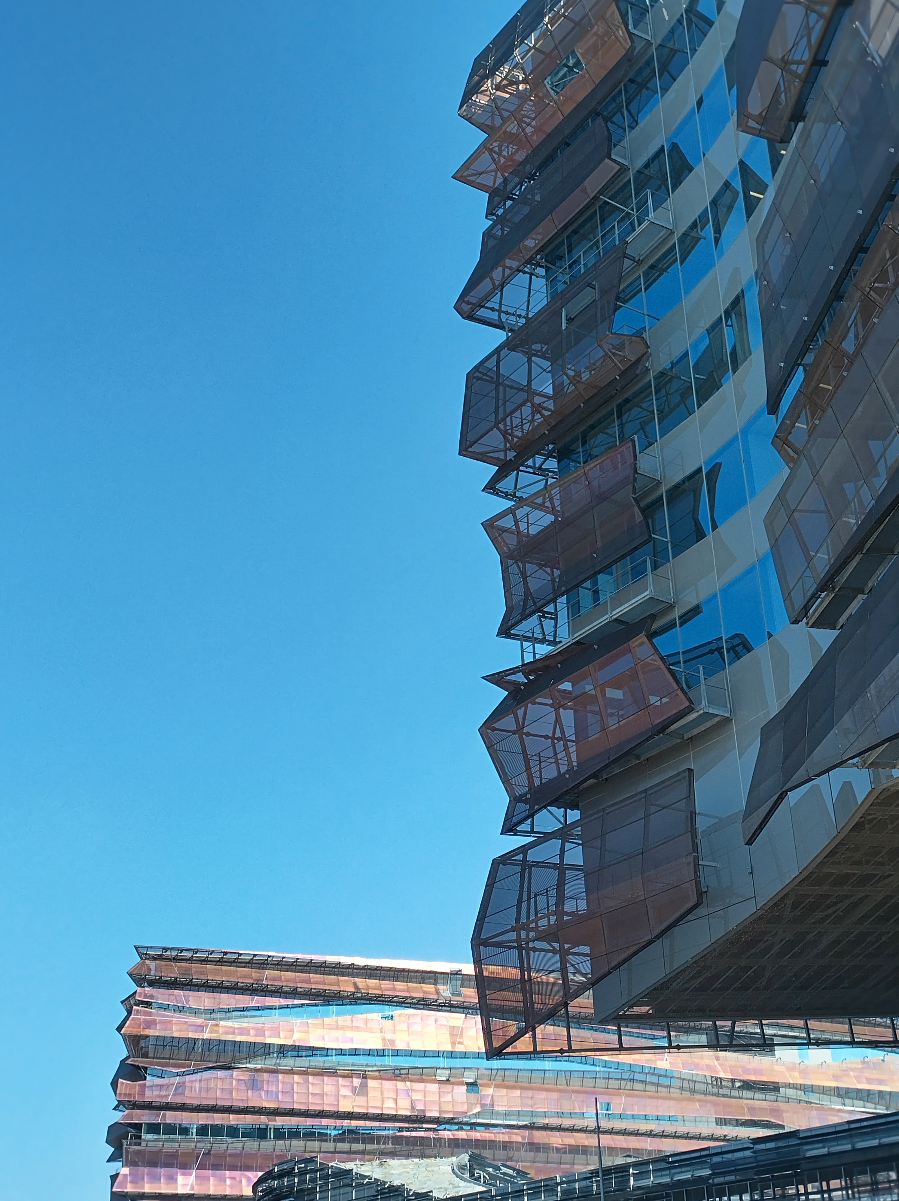 La stessa forma architettonica (Fluida, decostruita, tecnologica) e le scelte materiche (acciaio microforato, ecc.) esprimono un linguaggio ormai desueto, le ARCHISCULTURE, più consono al secondo Millennio, che al terzo. Vengono in mente Zaha Hadid, Jean Nouvel, o meglio Frank O. Gehry a Bilbao (https://bit.ly/3YrrOOW).