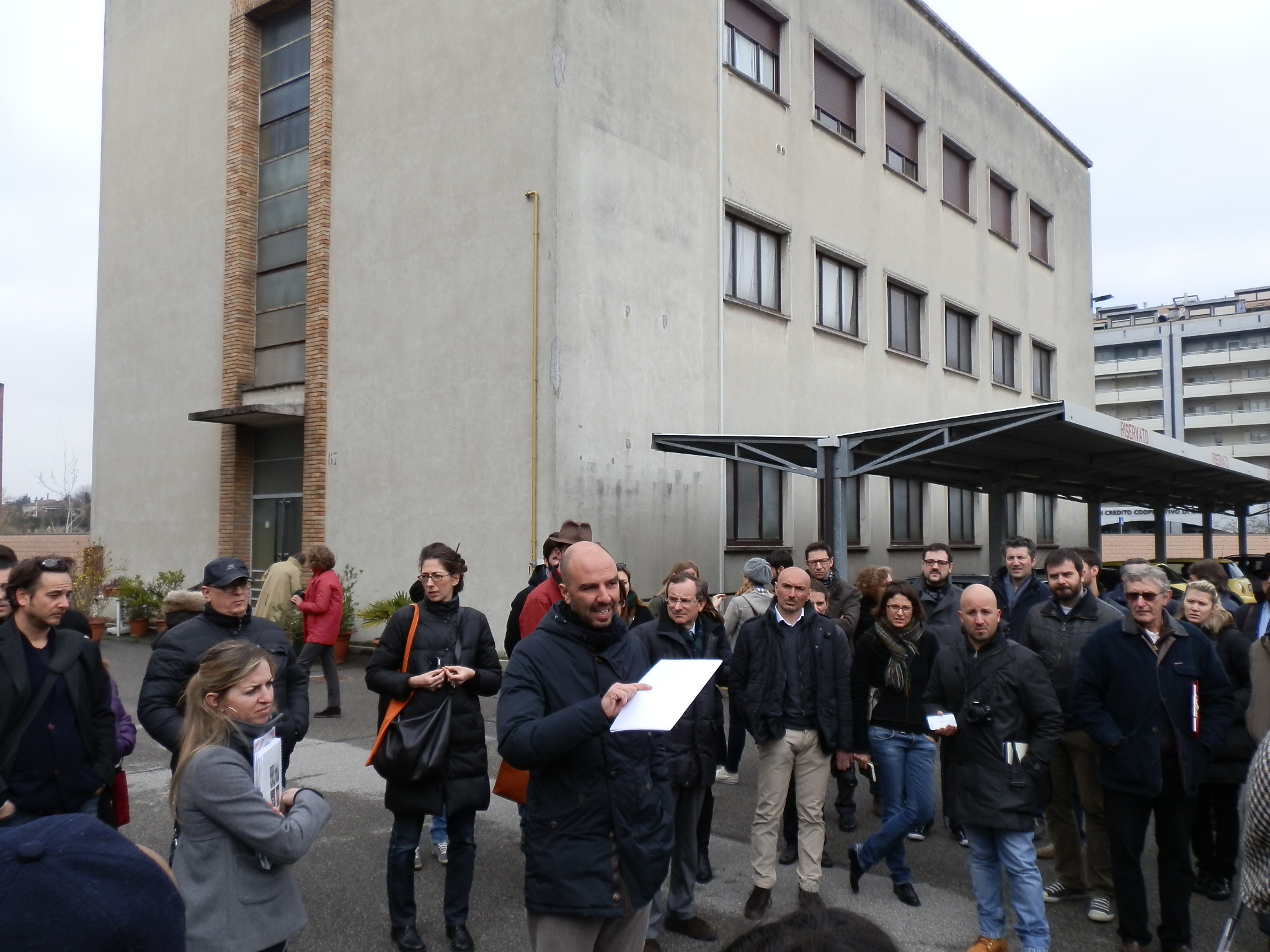 Il 29 marzo, quando abbiamo eseguito noi il sopralluogo dell’area, sembrava di trovarsi ad una “grande adunata”, ad un raduno di architetti, provenienti da tutta Italia ed anche da alcuni paesi europei. Per un attimo è come se l’area, ormai in completo abbandono, si fosse animata di nuovo, non più frequentata da lavoratori, ma da creativi, ansiosi di esprimere le loro idee in merito.