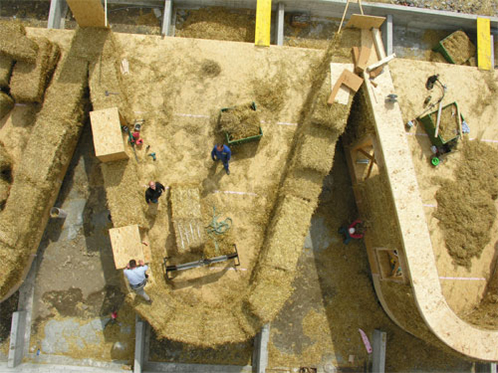 Costruire una casa, un’abitazione, utilizzando quale tamponamento perimetrale, la paglia, significa quindi soprattutto mettere, questo materiale di scarto, nelle condizioni migliori, per preservarsi nel tempo. Poi, se, come nel caso che andremo ad analizzare, si cerca anche di fare un’architettura che si implementi nel paesaggio, bisogna trovare un giusto equilibrio tra estetica e tecnologia.