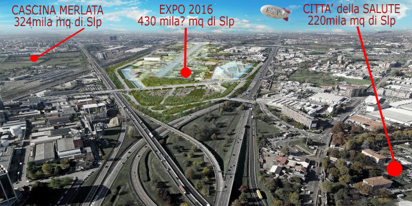 Cascina Merlata è il “Lato Oscuro” dell’Expo 2015, incomparabile con l’evento del BIE, perchè “CEMENTO SICURO” il vero e proprio luogo, dove si consumeranno i lati più turpi di Expo 2015 : 324.000 mq. di slp (superficie lorda di pavimento), 6.500 nuovi residenti, oltre 3.000 addetti, 990 alloggi, hotel, uffici, un enorme plesso scolastico con 800 alunni, centro commerciale, bei grattacieloni di oltre 20 piani, ecc.. Oltre al parco e alla residenza, troveranno posto : parcheggi per 50.000 mq (tutti interrati quelli in dotazione alle abitazioni), un plesso scolastico di 12.000 mq, due asili nido e un centro per anziani. Il centro commerciale (di oltre 45.000 mq) è stato collocato sul confine nord del quartiere dove sono anche previsti un albergo (15.000 mq) e una torre per uffici (10.000 mq). Alla residenza è stata riservata una superficie di circa 323.000 mq, suddivisa in libera (il 40%) con quotazioni tra i 3.000 e i 3.400 euro al mq; convenzionata (40%), tra 2.200 e i 2.500 euro al mq, e agevolata (20%) i cui prezzi non dovrebbero superare 1.900 euro al mq. Gli appartamenti, avranno tagli dai monolocali agli alloggi con 4 o 5 locali. È prevista anche una quota di appartamenti in locazione i cui canoni saranno stabiliti dalla convenzione urbanistica. La principale società proprietaria dei terreni è il consorzio Euromilano (60%), ci sono poi Greenway (30%), Cesi (5%) e Zoppoli & Pulcher (5%). Il Consorzio, guarda caso, racchiude anche delle Cooperative di “sinistra”, la Banca Intesa, ecc……chissà come mai il PD si è astenuto, di fatto non ostacolando questo piano?