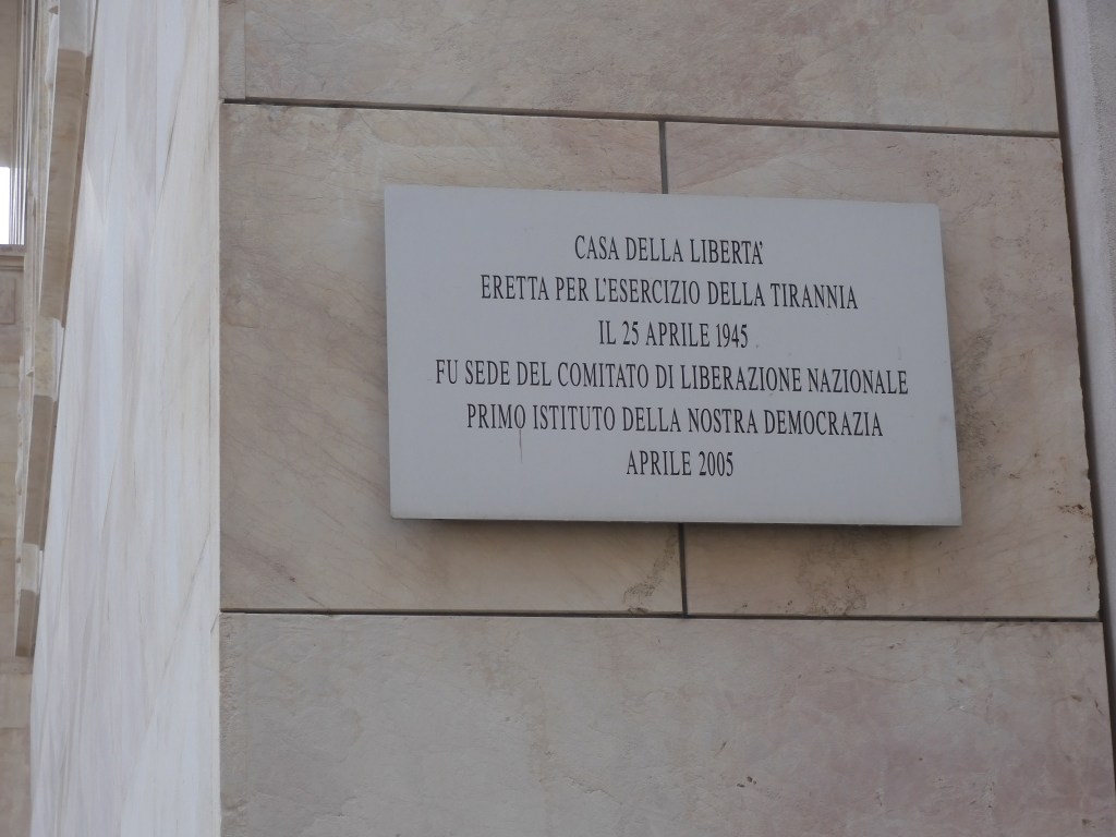 Sede rappresentativa del locale Partito Fascista, come Casa del Fascio fu edificata tra il 1936 ed il 1940. Attualmente dopo una manutenzione delle facciate, quella che è stata denominata ora “Casa della Libertà”, rivestita in marmo bianco-rosato di Zandobbio (https://shorturl.at/tzRTZ), restituisce il meglio di questo prezioso materiale geologico locale.