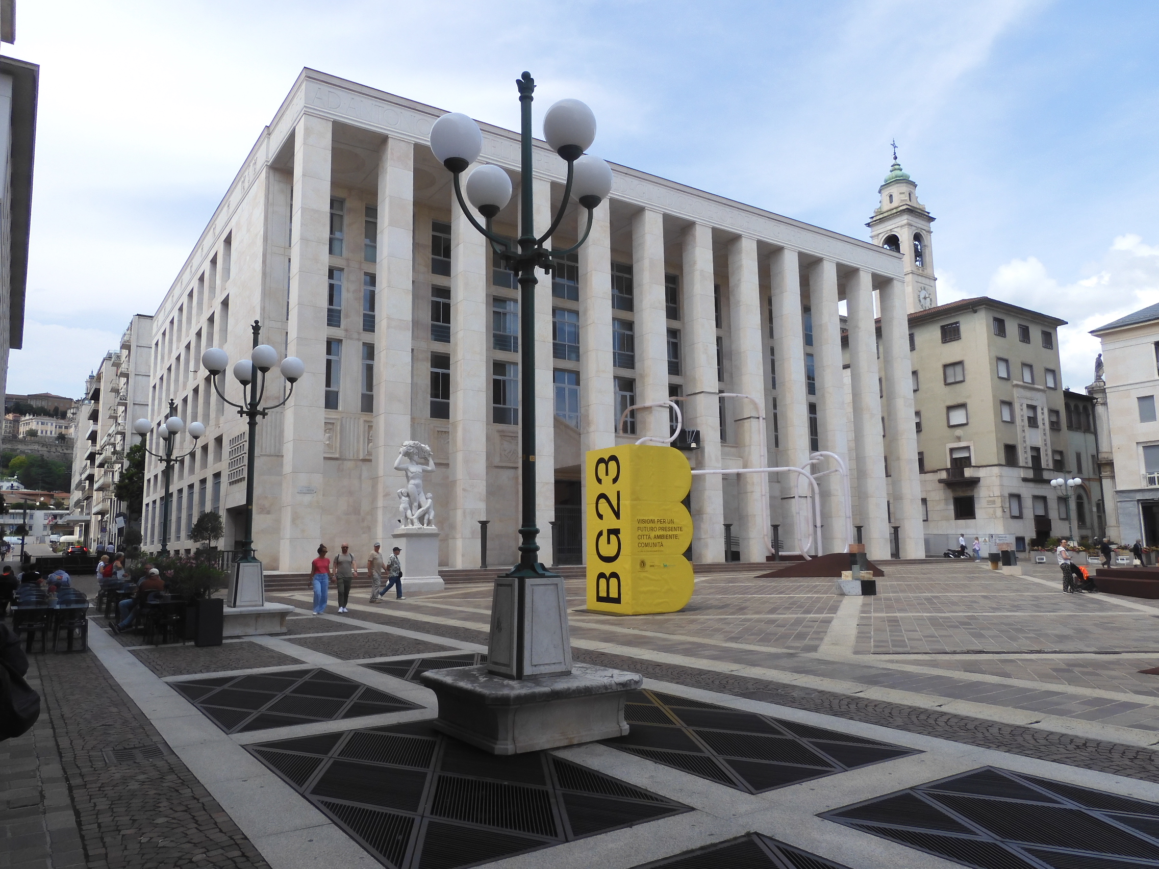 In occasione di Bergamo/Brescia capitali italiane della cultura 2023, all’interno della sala per le adunata, è stata allestita una bella mostra a cura dello Studio Luca Molinari, dal titolo: “BERGAMO ’23. VISIONI PER UN FUTURO PRESENTE” – https://shorturl.at/azG14