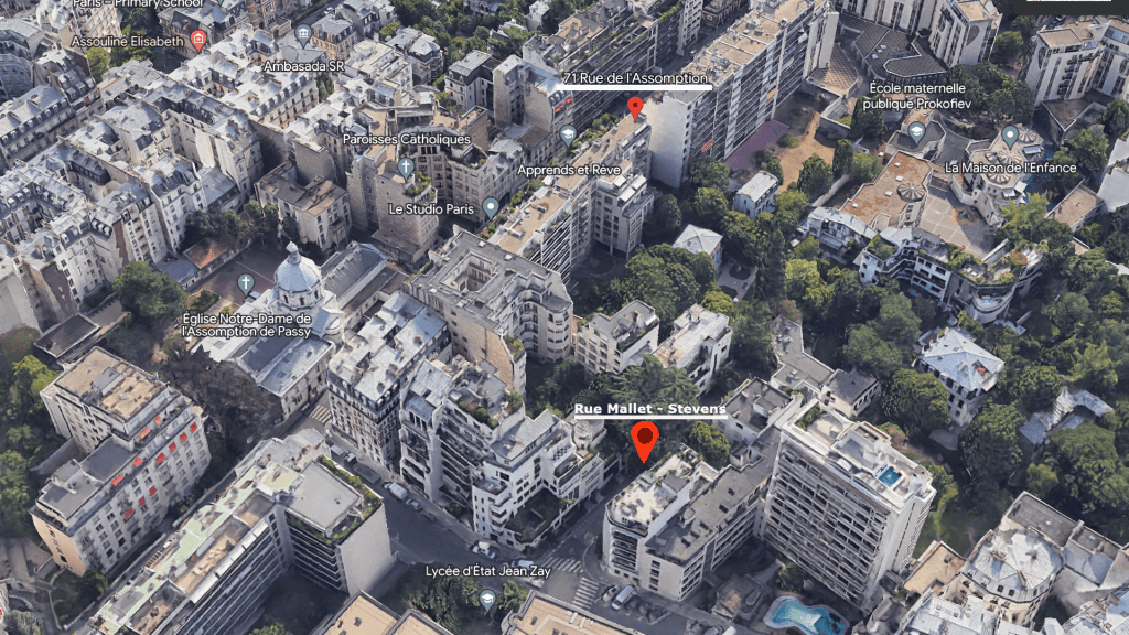 Sopra planimetria con localizzata la cisterna delle rane, tratta da Google Earth