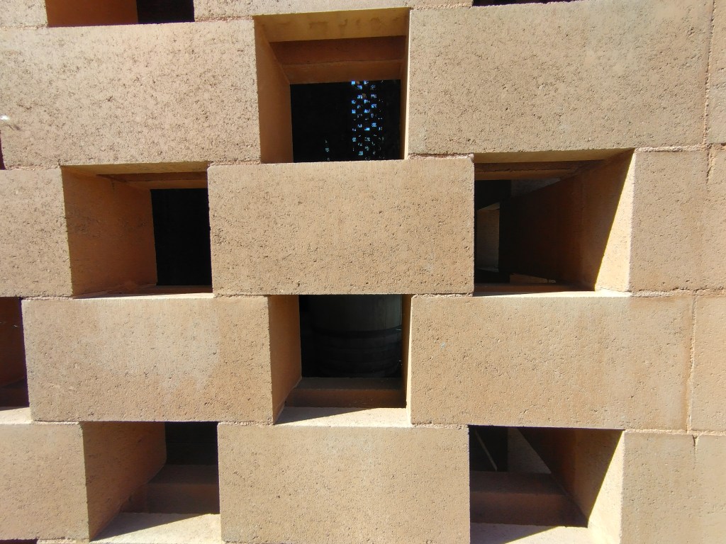 Il cemento armato, appoggiato sui reperti archeologici del basamento del Teatro romano, banalmente rivestito in mattonidi laterizio. Una operazione banale di nascondimentoscenografico,probabilmente concordata con i detentori del vincolo sui reperti.