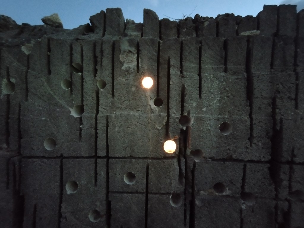 Il Muro dei Longobardi costituito da pietre riutilizzate, sovrapposte con sapienza dall’artista, definiscono una serie di nicchie, di aperture, in cui saranno collocati dei “frammenti” di reperti archeologici, opere dello stesso Paladino.