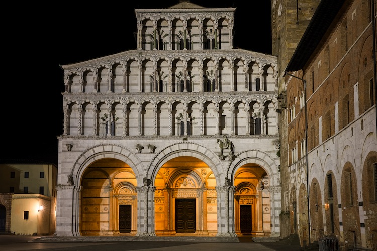 Il Duomo di Lucca, dedicato a San Martino, è un’architettura che fa della “rottura della simmetria” della facciata, uno dei principali motivi della sua insolita bellezza. Alla facciata è appoggiato un portico-nartece con 3 arcate asimmetriche: molti studiosi sono concordi sul fatto che l’arco di destra sia molto più stretto degli altri due a causa della vicinanza del preesistente campanile ma il vero motivo di questa macroscopica “imperfezione” della facciata, in uno stile architettonico che perseguiva la simmetria e le proporzioni come strumento per avvicinarsi a Dio, è considerato da molti una delle particolarità architettoniche del Duomo di Lucca. La vera architettura rifugge, aggira, l’eccesso di simmetria che può anche rivelarsi stucchevole a lungo andare perché il ritmo ordinato della simmetria perfetta è rassicurante, ma rischia di essere “piatto e banale”; non emoziona perché non produce sorpresa; l’elemento di rottura inquieta ma insieme incuriosisce, ci spinge a uscire dalle certezze e a cercare di capire dove ci sta portando questa incrinatura dell’equilibrio. La vera bellezza architettonica è spesso il frutto di una a-simmetria preordinata ( https://costruttoridifuturo.com/2012/09/29/simmetry-and-words/ )