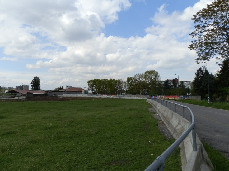 Veniamo alla Cascina Zerbone, ultima preesistenza di un paesaggio agricolo che non c’è più. Proprio a ridosso della tangenziale un’ultimo terreno, con qualche centinaio di mucche, produce ancora latte. Quì i cittadini (sotto dei bei bandieroni gialli) si sono mossi da subito per ottenere una revisione del Contratto di Quartiere (che prevede, quì, una massa di volume e di case residenziali, con un bello svincolone della tangenziale) per salvaguardare una cascina che forse non ha nemmeno senso tenere localizzata lì. Ma tant’è, quì gli operatori immobiliari possibili per la cementificazione dei terreni di Cascina Zerbone, sono soprattutto legati ad entità non coerenti con i “bandieroni gialli” sopra descritti . E quindi quì ci si dà da fare, per salvare quattro mucche ed un latte che probabilmente, qualche chilometro più in là, verrebbe sicuramente meglio, lontano dai miasmi della tangenziale. Il concetto è di arginare definitivamente il consumo di suolo agricolo, in una città, Milano con una superficie comunale molto piccola, che agricola non lo è mai stata, che dell’agricoltura se ne è infischiata per centinaia di anni in favore della manifattura.