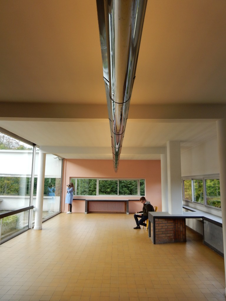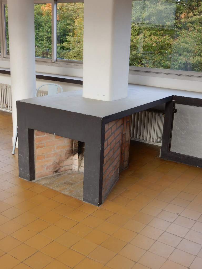 SOPRA – Dettagli caminetto/mensola/serramento, piano primo, Villa Savoye a Poissy, Francia. Architetti : Le Corbusier, Pierre Jeanneret, 1928/1931