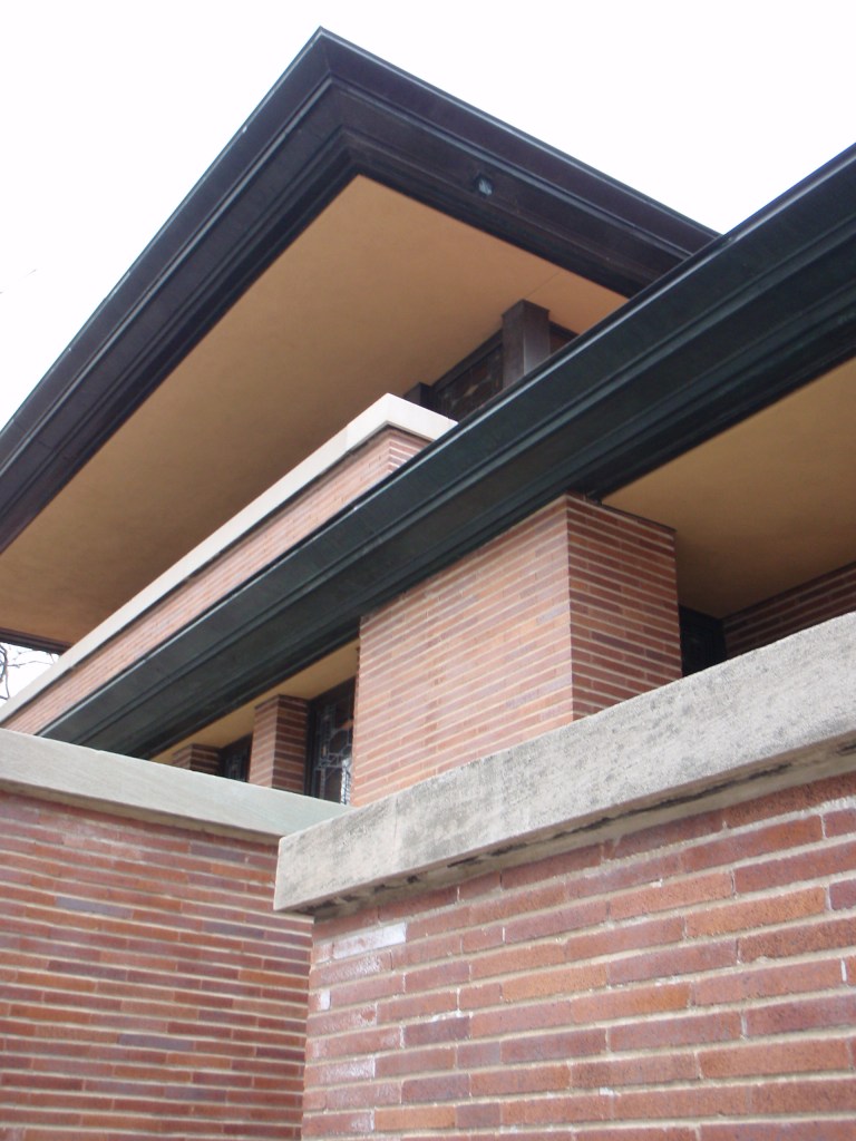 SOPRA – Dettaglio della gronda/cornice – La Frederick C. Robie House è una costruzione progettata dall’architetto Frank Lloyd Wright, completata tra il 1908 ed il 1910. Si trova a Chicago Illinois, negli USA. Oggi è una dei National Hystoric Landmark degli Stati Uniti d’America, in virtù della sua importanza artistica e storica; è conosciuta infatti come la migliore rappresentazione della Prairie House School, Stile architettonico statunitense degli inizi del Novecento.