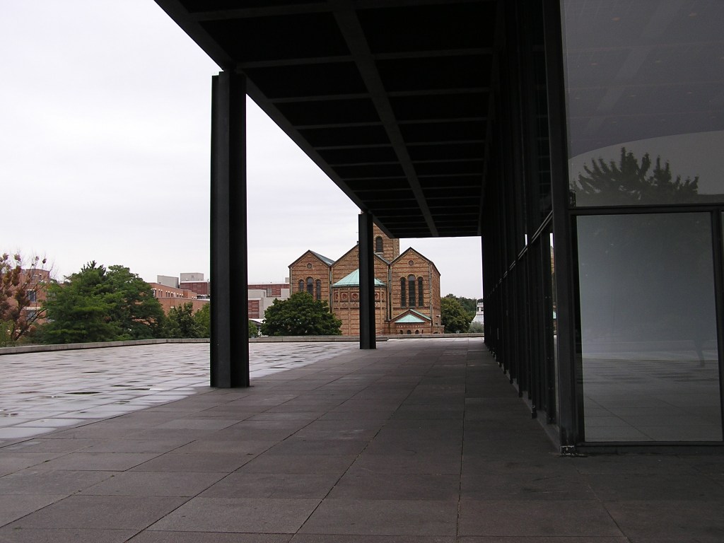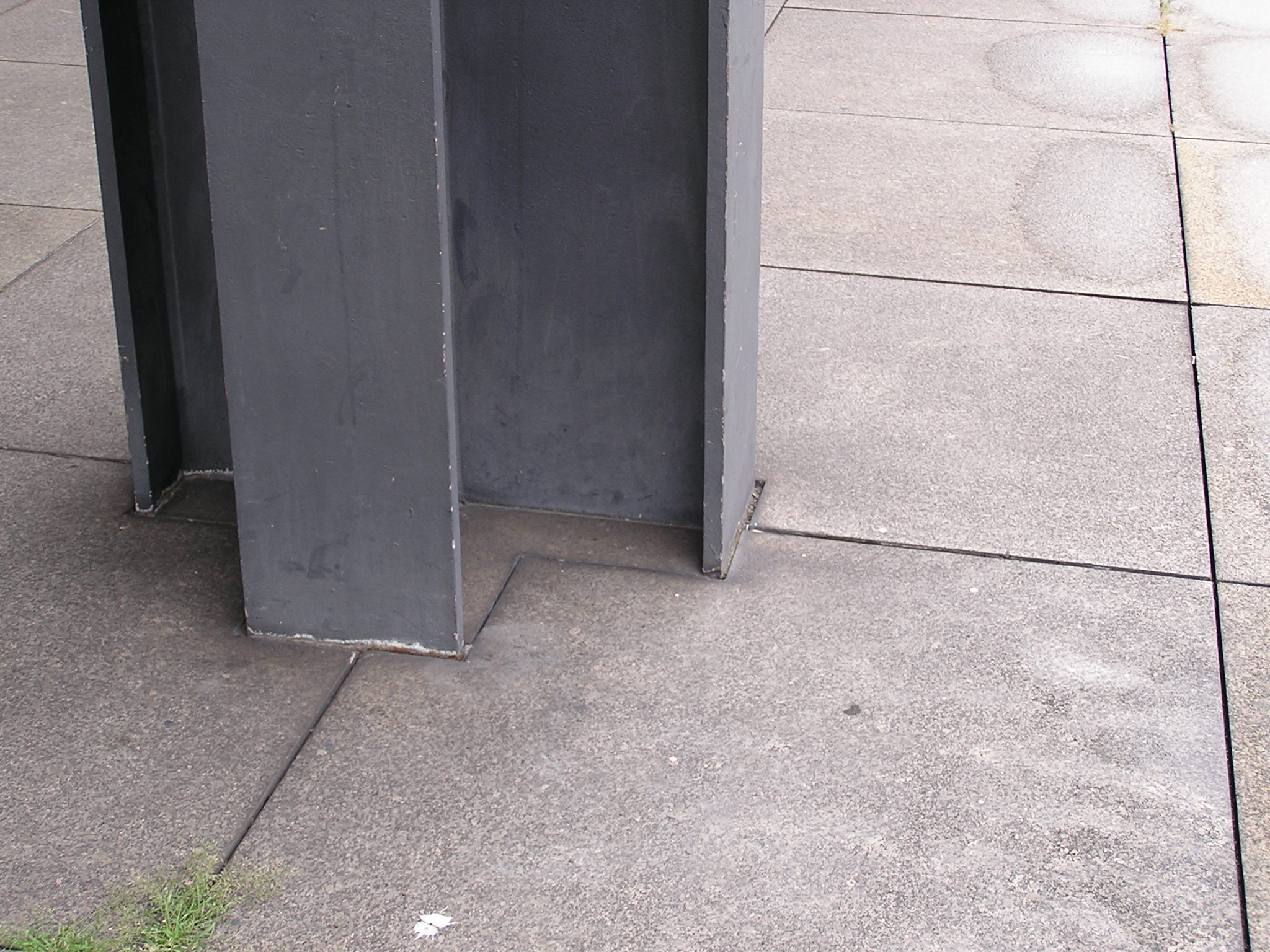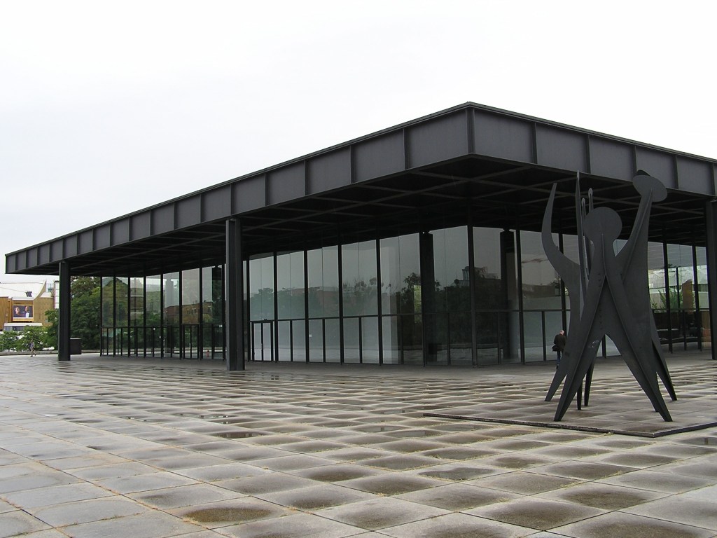 SOPRA –Dettaglio innesto delle colonne in acciaio, nel pavimento lapideo – La Neue Nationalgalerie (letteralmente: «nuova galleria nazionale», in contrapposizione alla Alte Nationalgalerie – «vecchia galleria nazionale») è un museo di Berlino destinato, dalla sua istituzione, ad occuparsi dell’arte del ventesimo secolo. Il museo si trova nel Kulturforum ed è considerato, insieme alla Gemaldegalerie e al Kunstgewerbemuseum, uno dei più importanti musei siti nell’area. L’edificio è stato progettato da Ludwig Mies van der Rohe, che ricevette l’incarico di progettarlo nel 1962, e fu inaugurato nel 1968.