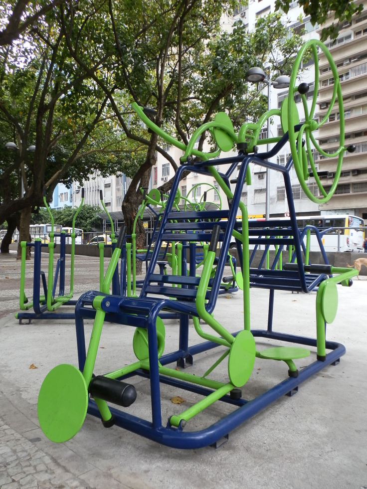 Ma ritorniamo a Rio, quì è diffusissimo, ed altamente semplificato, l’utilizzo della bicicletta, anche per rifornire i negozi ed i chioschi lungo le spiagge, con tante piste ciclabili ed un bike sharing che puo’ essere attivato direttamente dal cellulare. Ovunque, grande attenzione per il verde, per l’ambiente e per i mezzi pubblici. Una delle cose che ci ha stupito di piu’ sono i giochi all’aperto, per la terza eta’ che numerosi contraddistinguono, insieme ai giochi bimbi, tutte le aree verdi. Una maniera semplice ed intelligente per “fare uscire gli anziani” ed agevolarne la motricita’ e la socialita’. Il settore parchi e giardini della Prefettura di Rio, con l’istituzione del Parco Nazionale di Tijuca, ha reso più complessa, la vegetazione delle vie urbane, coinvolgendo le aiuole ed i tronchi delle piante, agevolando l’insediamento su di essi, di bromeliacee ed orchidee. Ciò ha come, portato per le vie della città, la Mata Atlantica (la foresta Tropicale), favorendo l’insediamento di piccole scimmie e soprattutto di uccelli.