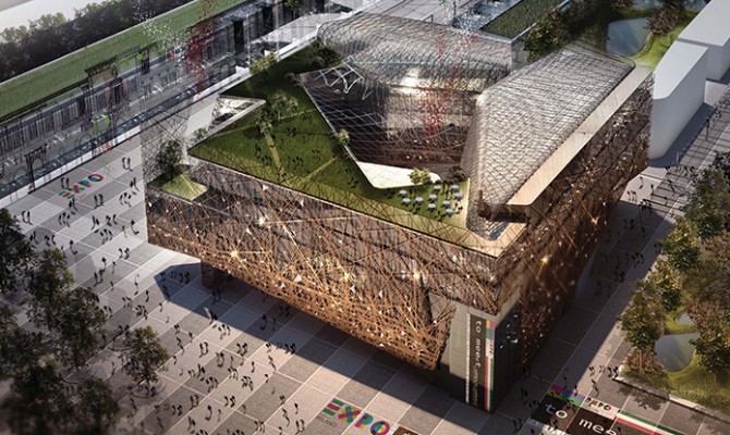 Ancora un’architettura di “pelle”, e nemmeno di “pelle buona”(come invece è il magico MY STOP dello Studio Hotz & Partner ormai completato qualche annetto fa), il risultato del concorso internazionale per il “Padiglione Italia” di Expo 2015, rappresenta quanto di più retrivo e triste si potesse immaginare. Infatti il progetto del raggruppamento di imprese, come si dice oggi, costituito da : Nemesi & Partners Srl di Roma, Proger SpA di Pescara e BMS Progetti Srl di Milano, ha partorito un “topolino”, un progetto “fragile, fragile”, che assomiglia molto ad un “autogrill”, ad un “supermercato”, e si vede quindi costretto a trincerarsi dietro l’eco sostenibilità spinta (soprattutto impiantistica) data dall’equilibrio tra “produzione e consumo di energia”.