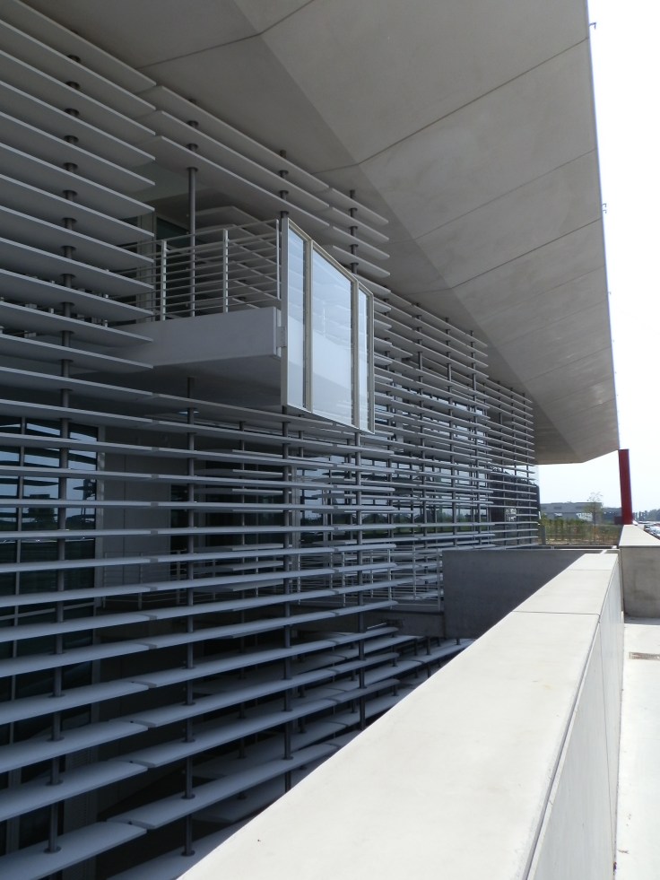 Vi chiederete perchè venire fin quì, ma se amate il paesaggio e l’architettura, lo scoprirete facilmente. La città è deliziosa, tranquilla, con un legame intimo, con il fiume che l’attraversa e con la sua “campagna”. Tantissimo verde, e quà, e là una serie di edifici di architettura contemporanea pregevoli che “twittano” con il paesaggio ed inusuali per un così piccolo centro. Ad iniziare dalla “Aargauer Kunsthaus Extension” concepita da Herzog & De Meuron nel 2003. Un edificio sensuale, in cui il muschio che si sviluppa copioso, soprattutto in autunno ed in primavera, sui blocchi di tufo della copertura/piazza, costituisce uno dei riferimenti principali dell’architettura percettiva e mutevole, cara ai due “geniacci” di Basilea. Bellissimi anche gli interni, con la grande scala a chiocciola, che come un “cavatappi”, sembra attraversare tutto l’edificio fino in copertura. Vetrate e parapetti “fluo” completano la fascinazione, in un’operazione di marketing turistico, che ha anche molto da insegnare alla pochezza della politica italiana in merito.