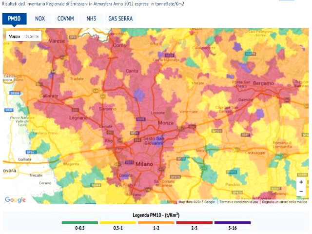SOPRA – Qualità dello stato dell’aria, espressa in valori annui, nell’Area Metropolitana Milanese